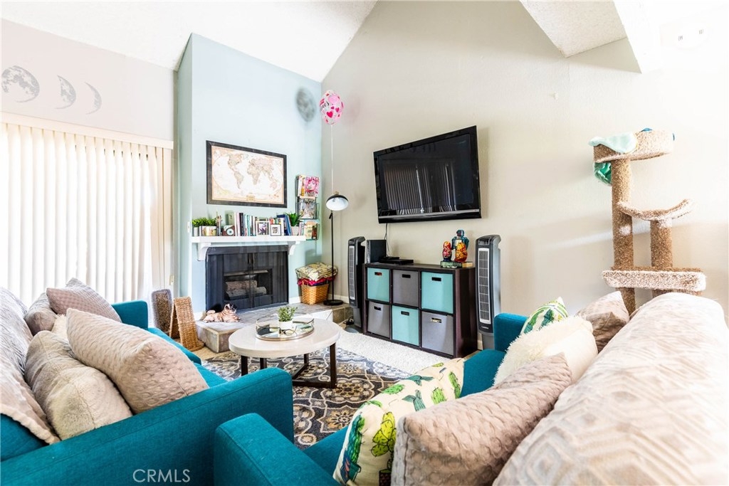 This Fullerton home comes with an open floor plan and high cathedral ceilings. One bed, one and a half bath loft near the freeways in a very scenic Fullerton condo complex. Entry opens up into living room and kitchen with a half bath downstairs and full bath and bedroom in a loft upstairs with attached patio. Living room access to back patio with view of the surrounding neighborhood. Association includes tennis courts, clubhouse, pool and spa. HOA pays for water. Washer and dryer included. One assigned carport with plenty of guest parking. VA and FHA approved.
