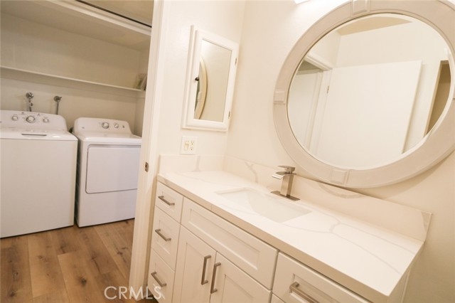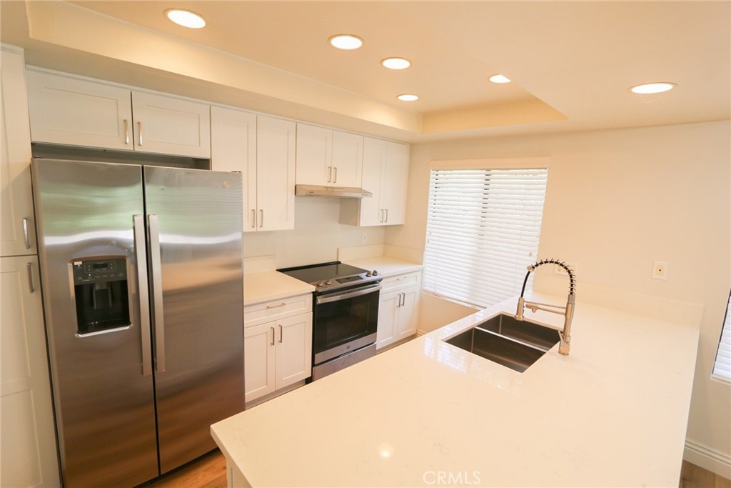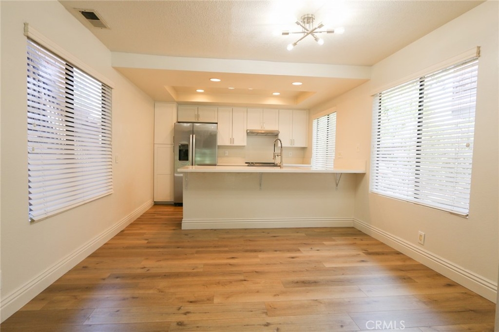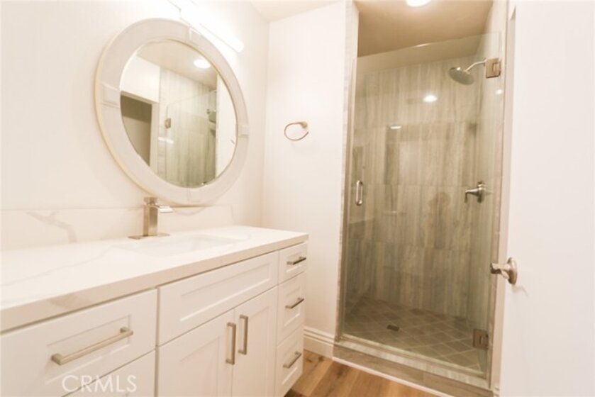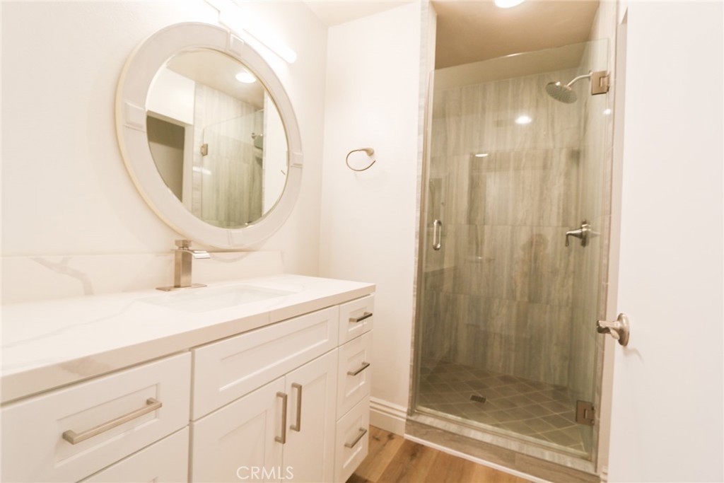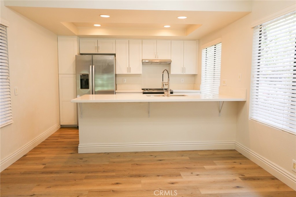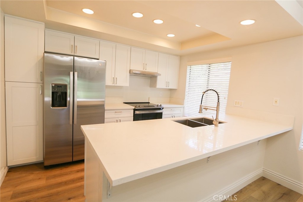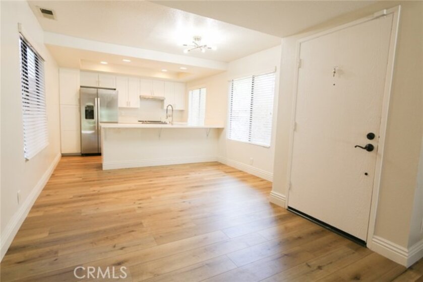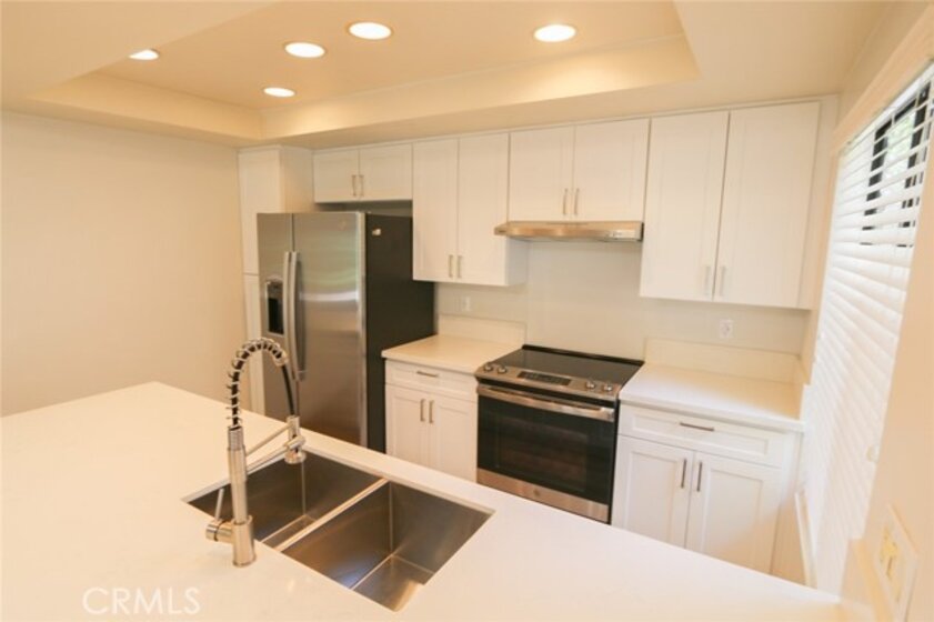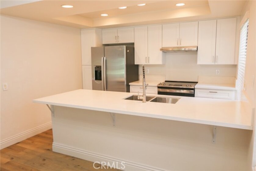 YOUR HOME, YOUR OASIS!!! Nestled in your own quiet neighborhood minutes away from; Award-winning schools, shopping, dinning, freeways and parks, the corner unit of your dreams is waiting for you! Wake up to koi fish greeting you in the morning and the calming sound of flowing waterfalls and streams. Upon entering the Home, you are greeted with open concept living and upgrades galore!!! A complete kitchen renovation includes; quartz countertops, energy efficient appliances, soft closing drawers, a deep sink, Island seating, designer hardware and dining space for a large kitchen table. This home's floorpan allows for ample space, flexibility and entertaining. Luxury vinyl plank flooring throughout leads you down the hall to both large bedrooms and 2 full, renovated bathrooms. Storage is more than adequate with various linen closets, wall to wall bedroom closets, and a complete closet system with pullouts in the large hall closet. For Your Convenience, the inside laundry space is located at the entrance of the Master Bedroom. A large, walk in, storage unit is located at the patio to accommodate all of your storage needs. Back to back, covered car port spaces complete this propertie's qualities for your 2 vehicles or to use for your guests. Take a stroll through the captivating property grounds to the pool area complete with; a private jacuzzi, tennis and basketball courts, a gym and a clubhouse space. You do not want to miss the opportunity to view this gorgeous, renovated, one of a kind, property in the heart of Orange County!!!