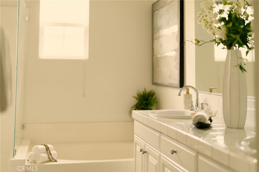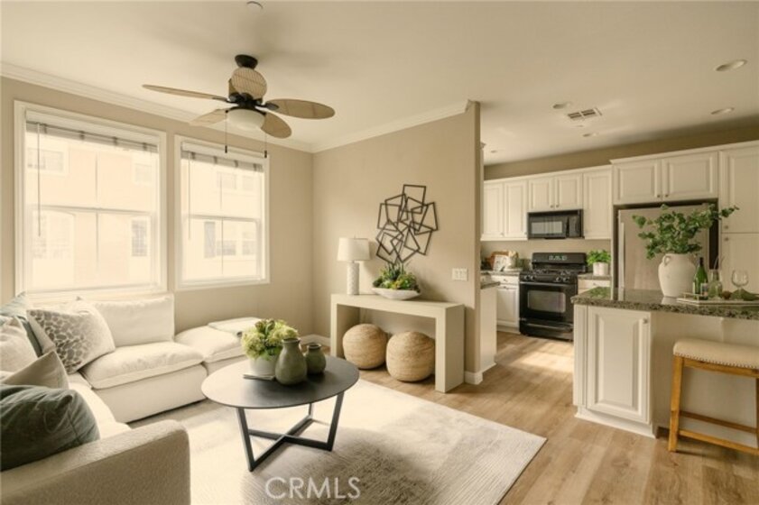Located in one of Fullerton’s most desirable neighborhoods, this beautifully maintained tri-level home sits in the sought-after Amerige Heights “Radcliffe” community by renowned builder MBK Homes. Tucked into a quiet interior location, the welcoming front porch sets the tone for relaxed, upscale living. The home features 3 bedrooms, 2.5 bathrooms, and a private layout with no one above or below. The living room offers a cozy tile fireplace, while brand new wood like luxury vinyl and tile flooring run throughout. The open-concept kitchen includes granite counter tops, white cabinetry, black appliances, stainless steel dishwasher, center island, and adjacent dining area, ideal for everyday living and entertaining. The spacious primary suite offers dual sinks, separate tub and shower, and a large walk-in closet. Additional highlights include recessed lighting, crown molding, ceiling fans, upstairs laundry, powder room, and direct access to an oversized 2-car garage with storage and workspace. Guest parking is conveniently nearby. Enjoy resort-style HOA amenities including pool, spa, tennis courts, clubhouse, high-speed internet, and beautifully maintained grounds. Walking distance to top-rated schools such as Robert Fisler Elementary/Junior High, Sunny Hills High School, Arborland Montessori, and Amerige Heights Shopping Center. Close to parks, golf, dining, and shopping.