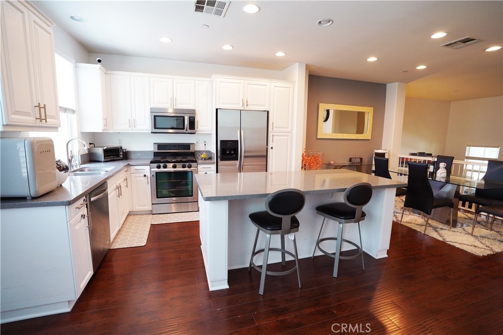 ***THIS HOME IS MOVE IN READY*** Located in a charming neighborhood within walking distance to parks and schools. This lovely, 2 bedroom with ceiling fans, 2 ½ bathroom home graced with high ceilings. Attractive Hardwood floors throughout the home. Beautiful UPGRADED KITCHEN with NEW KitchenAid stainless steel appliances; dishwasher, microwave, 5 gas burner stove with oven and neutral tone Quartz counter tops. BATHROOMS have been upgraded and include neutral color Quartz counter-tops and new hardware. Enjoy a clean fresh water with the new filtration system in the kitchen and Water Softener system throughout the home. 2 Car attached garage. This community offers many amenities; pool, spa, barbecues, private parks, tennis court, parks, relaxing greenbelt trails, award winning schools, located near to many fine restaurants, stores, and convenient to major shopping centers.