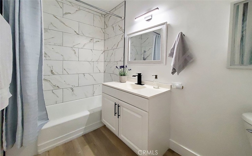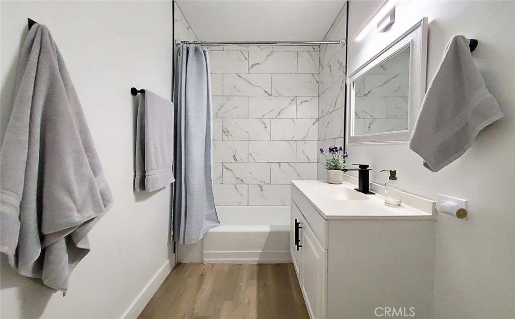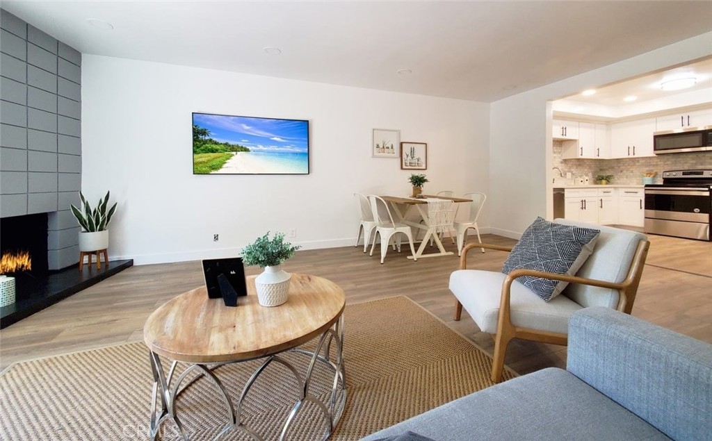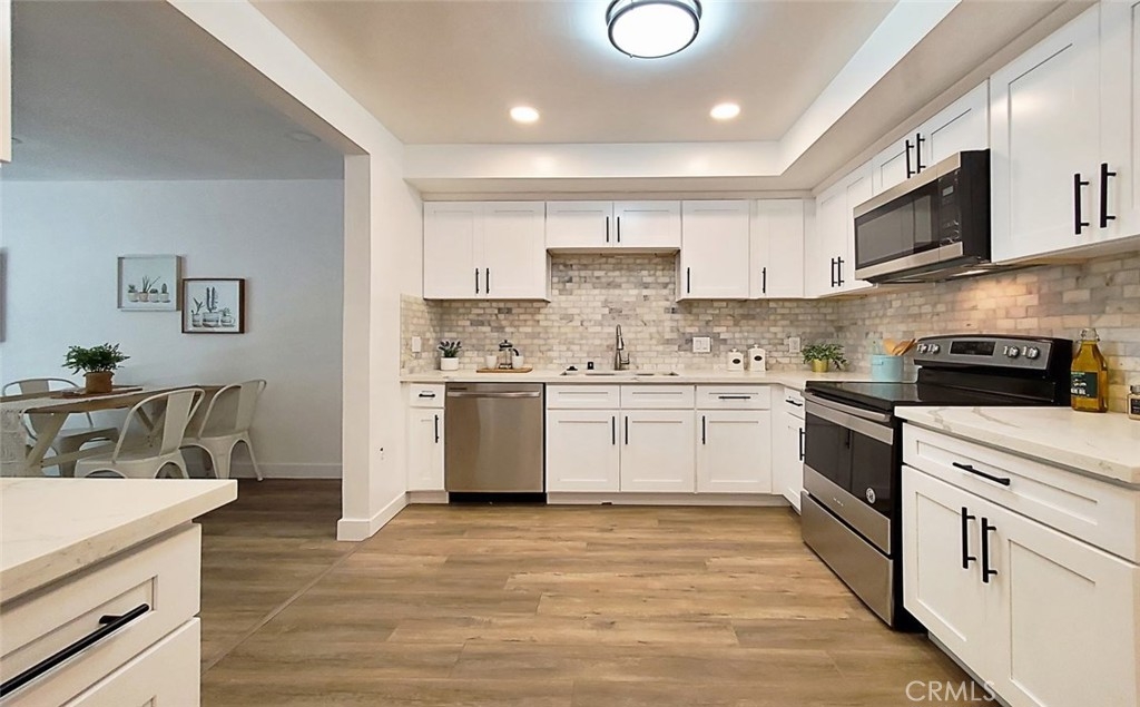 Absolutely gorgeous! This spacious open concept condo has a brand new gourmet kitchen with New grey shaker cabinets, New quartz countertops, New custom marble backsplash, recessed lighting, New stainless steel appliances, & New laminate flooring make this kitchen a dream come true for any buyer. Beautifully appointed, this stunning residence offers easy living with elegance and style! Enter this brilliant open floor plan and fall in love! cozy fireplace! A full sized laundry room conveniently located inside your unit with ample room for storage.. New plush carpet in beds. Double pane windows & slider with custom blinds. Scraped ceilings & New recessed lighting. HUGE master suite with a private bath & separate vanity area. Master & guest bath have New vanities, New fixtures, & New lighting. 2 assigned parking below in secured gated area. HOA covers maintaining the building's common areas, landscaping, swimming pools, spa, tennis court, gym, water, trash, and insurance. Close to Fullerton Loop, trail for bike & hiking, schools, shopping, & restaurants. Highly rated schools. Located on a quiet Cul-De-Sac. Welcome home!