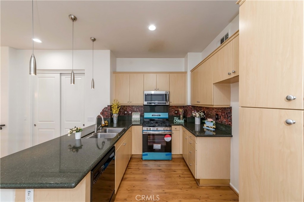 Welcome to 111 Soco Dr., one of the largest floor plans with 3 Bedrooms plus 3 Full Bathrooms end unit located in HIgh-End Soco Walk District by downtown Fullerton. This fancy condo features fabulous upgrades with custom brick entry along with custom storage space next to one Full bedroom for guests, home office ,with one full bathroom downstairs. Industrial staircase leads up to the large open floor plan with an upgraded kitchen with additional closet space. There is a master bedroom with its own master bathroom next to the 2nd bedroom with access to the balcony and the 2nd full bathroom in the hallway. Additional features including laminate wood floor, stainless steel appliances, new fresh interior paint, ceiling fans, blinds, recessed lighting, and the laundry closet upstairs. Don't miss the enough garage space for 2 cars. The Soco walk Community is just a walking distance to Metro Link and Downtown Fullerton Entertainment hot spots. Don't miss this charming house, must see and move in ready !!!