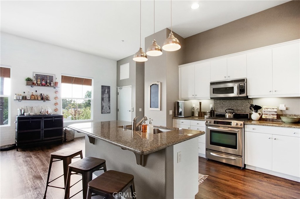 Come see this very unique New York style loft in the heart of Fullerton. Located within walking distance to very popular restaurants and shopping in downtown Fullerton. You may ride your own private elevator from ground level to the main third level (or opt to take the stairs) to a spacious 2 bedroom and 2 full bath living area with very high ceilings. Two car tandem garage with direct access and an additional room for storage. There is an updated kitchen with granite counter tops, stainless steel appliances, and a great island for cooking and entertaining. New durable hardwood laminate flooring throughout with carpet in bedrooms and hall. There is a private washer and dryer located in the hallway closet. The master has it's own bathroom with a large soaking tub, separate shower, and dual sink vanity. The second bedroom has access to a bright balcony for outdoor relaxation. The owners have upgraded features in every room and installed new lighting fixtures and ceiling fans. You may also choose to lease the high tech live video alarm system with abilities to view your guests at the door, unlock and lock the front door with a touch of a button and much more! This beautifully upgraded home is unlike any of the other units in the area!