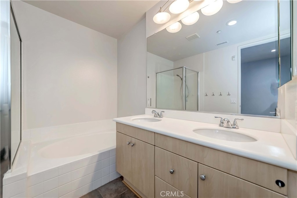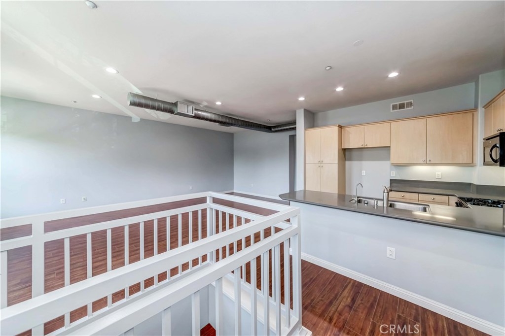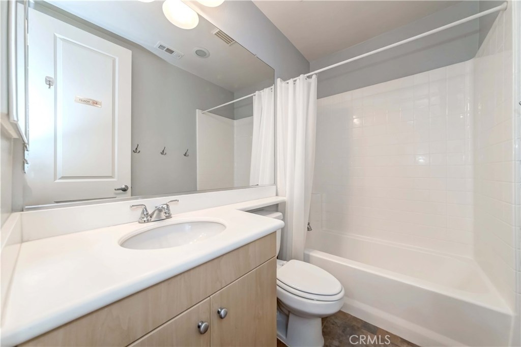 Welcome to one of the best floor plans in the upscale SOCO Walk community with 2 bedrooms and 2.5 bath. Live in contemporary elegance in an immaculate, cosmopolitan NYC style loft in the heart of Fullerton. This condo has 1 office and 1 commercial grade 1/2 bath downstairs that can be used as a business. Attached 2 car side by side garage with direct access to your unit. Upstairs is a comfortable, sophisticated, and urban style living room with open floor plan. Stunning wood floors. Beautiful kitchen is perfect for cooking/entertaining.The master bedroom and master bath are spacious with a huge oval tub, separate shower, and a private restroom. Inside laundry conveniently located in hallway. Just short stroll to local shops, restaurants, and the Downtown Fullerton Amtrak/Metrolink station to commute to Los Angeles or South Orange County. Easy access to 91 Freeway. Close to Fullerton College & Fullerton High School.