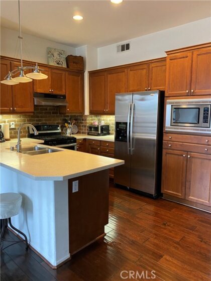 Beautiful live/work loft located in Down Town Fullerton SoCo Walk. This home features many upgrades and is well appointed. Walking distance to downtown restaurants, transportation, and activities. Ground level has double door entrance to a separate bedroom or office with 1/2 bath- could be bedroom, game room, workout room. Upstairs you will find the large open concept floorpan. The kitchen and eating area opening up to the living room. Kitchen appliances all stainless steel, wide plank hardwood floors on main floor. Great urban view of the transportation center for that City Life feeling with high ceilings and exposed industrial loft style ducts. Spacious master bedroom with in-suite bath includes soaking tub and separate shower. Seconds bedroom has its own balcony. There is also another bathroom just outside the door . Laundry area is conveniently located adjacent to the bathroom. If you like city living, and being able to walk, you won't find a better experience. Amtrak, Metro Link, lots of great restaurants parks, and shopping and entertainment..