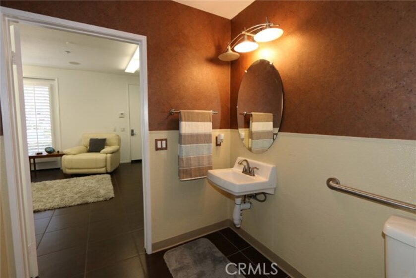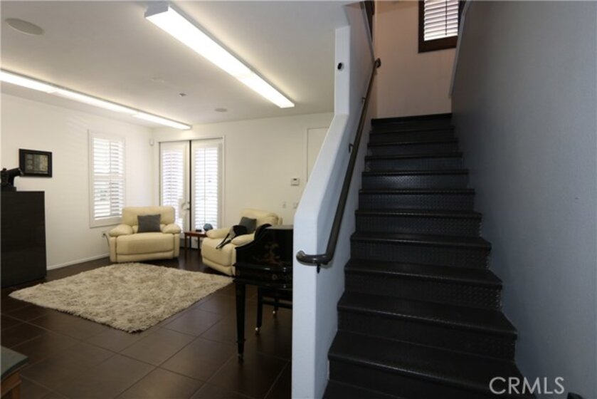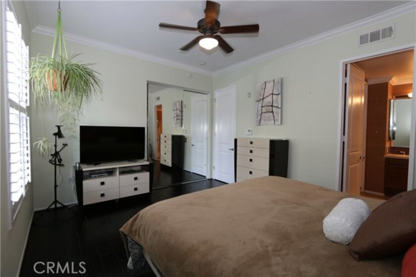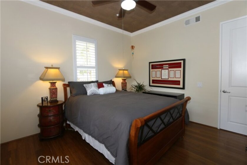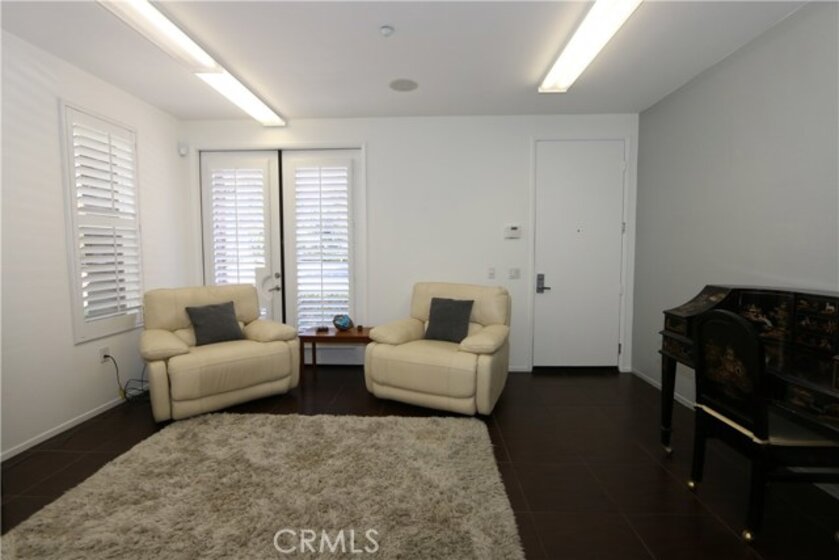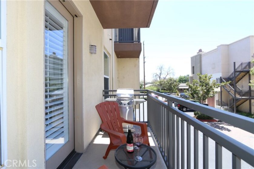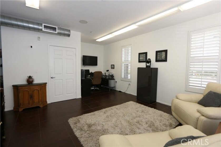 Style and Class is what's offered in this Former Model 2 bedroom, 2 1/2 bath with office condominium located in Soco Walk Complex. This place is ideal for anyone who is looking for low maintenance living with the luxury of a grand office away from home (downstairs), but yet at home! This lovely condo is very welcoming with the warmth of plantation shutters, beautiful dark wood flooring and an entertainers delight with ceiling speakers throughout. The kitchen is open to the Living room and Dinning area, both featuring recess lighting. The master bedroom offers a large slider closet and master bath with separate shower and soaking tub with beautiful custom wallpaper. The laundry space accommodates a full size stackable washer and dryer (included) and is located conveniently in the hall way. The second bedroom is also spacious and features a custom cork ceiling and a French door that exits to a decent size balcony where you can BBQ and enjoy a refreshing drink. The garage has it's own custom touches with grey Epoxy Flooring and custom cabinets that can easily be moved around to your liking, with a section to accommodate your tools for easy access. The location is another plus as it's walking distance to Downtown Fullerton and the Metro Link Train Station. "What a great place to Live, Work and Play!"