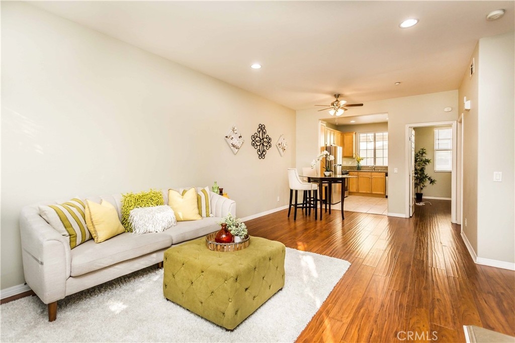 LOCATION LOCATION LOCATION!! Interior tract location within steps to the Fullerton Train Depot and walking distance to Downtown Fullerton and close to colleges! Enjoy this move-in condition tri-level condo with a 2 car attached garage, main floor bedroom or office with private patio. The second floor features a spacious living room with gas fireplace adjacent to a dining area and kitchen with granite countertops and stainless steel appliances and a separate bedroom and guest bathroom with shower. Top floor features a larger primary suite and a secondary bedroom also with ensuite bathroom and window seat. Upstairs full size laundry area for convenience. Laminate floors throughout all living areas, bedrooms and stairs. Located within a very well kept community of SOCO Walk. This complex is APPROVED for FHA and VA financing!!
