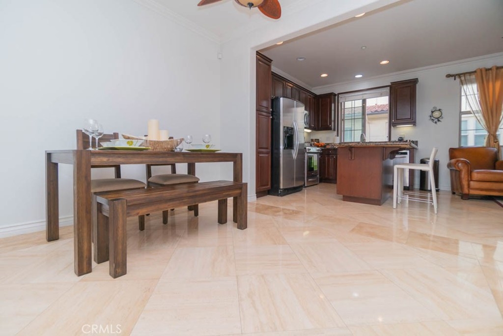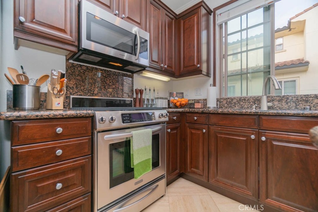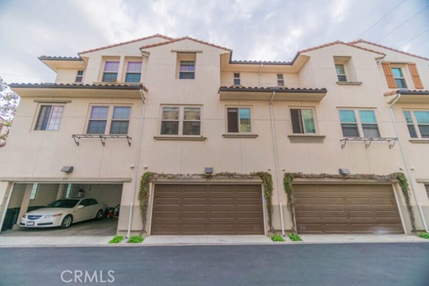 Welcome to Soco Walk in Downtown Fullerton! This modern townhome features 3 bedrooms and 2.5 bathrooms including a master suite with a private bathroom, living room with a custom built entertainment center, and dining area with Travertine Stone flooring. The gourmet kitchen features granite countertops, maple cabinets and an island which is great for entertaining. First floor bedroom has new laminate wood floors and beautiful french doors that lead into your front patio. There is in-unit laundry on the third floor (washer and dryer included in price). There is an attached 2 car garage below living area with custom cabinets which has ample storage and epoxy coated flooring! This unit is very centrally located. Minutes away from the 91 freeway, you are able to go to Los Angeles, South Orange County, or even the beach! Located in Downtown Fullerton, you are a few minutes walk away from hip shopping boutiques or a trendy dinner. If you take the Metrolink or Amtrak, the station is within minutes walking distance! At home, indulge your favorite beverage from your front patio or spacious living area. This convenient location and spacious floor plan make this townhome perfect for a first time homebuyer, investor, or growing family. Great for CSUF students as well. **Washer, Dryer, and Fridge are included in the price