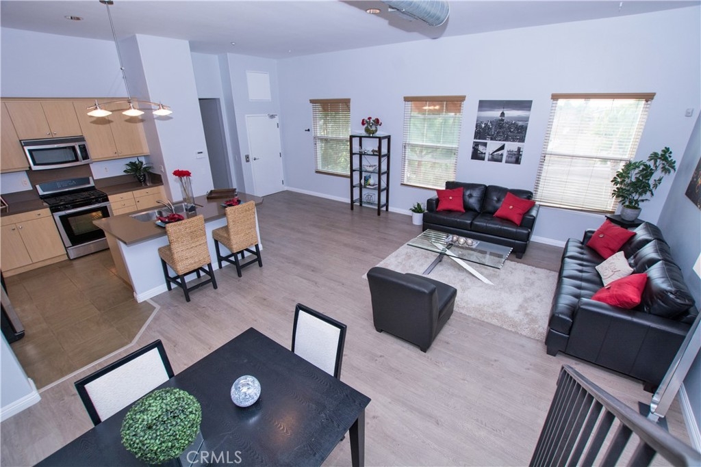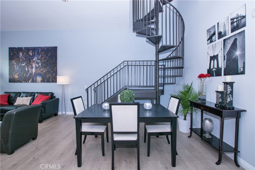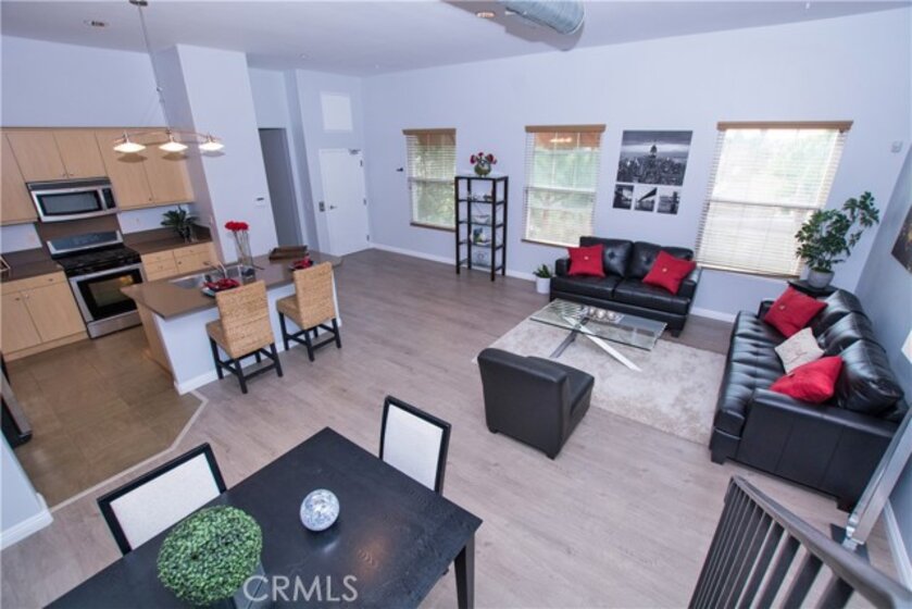 Upscale town home in the heart of downtown Fullerton. 3 bedrooms including upstairs loft, plus ** Unique rooftop deck to take in the Disney fireworks from your hot tub! Inviting entertainment space to include Island BBQ,fridge, ambient lighting, fire pit and breathtaking views. Private end unit overlooking greenbelt. This home shows like a model for the discriminating buyer. Its hip and very functional. Master suite with soaking tub. 2nd bedroom has private bathroom and a small balcony. Spiral staircase leads you to the loft area which could be a 3rd bedroom or bonus room. This is a contemporary open floor plan, high ceilings, exposed vents with a cool urban feel. The floors are wood like laminate and has just been painted a refreshing designer color. Tons of light stream through the large windows. Open Great room with private elevator, 2 car tandem garage, stainless steel appliances, inside washer & dryer included. Step out of this SOCO Walk loft Home and your right in the heart of the action.Stroll the rows of restaurants, Galleries, Cafes and clubs that are lighting up Fullertons 'South of Commonwealth' district and with the Metrolink station right next door, you can ride to work or play in comfort and ease. Close to SGV,DTLA,OC.