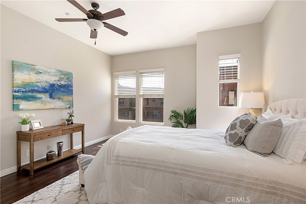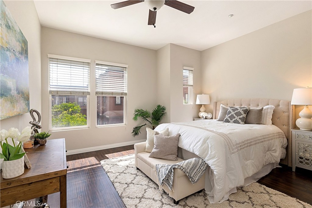 Beautifully nestled in the highly desirable community of Amerige Heights features the upscale upgrades to the property. The home is ideally located end-unit with abundance of natural light. This fantastic home boasts great open floor plan with soaring high ceilings, modern custom paint colors, laminate flooring & recessed lights throughout the property. The home has the entire living space in all on one level on the top floor. The gorgeous gourmet kitchen boasts new white cabinetry, new stylish quartz counter top with breakfast counter, single stainless sink & faucet. The entertaining living room with ceiling fan, plentiful windows & entertaining dining room with a dumbwaiter (grocery elevator) from garage to the living level. The master suite features en suite bath with dual sinks, and a spacious walk-in closet. Two other secondary bedrooms have mirrored closet doors and share the hallway full bath & one of the bedroom currently is used as an office and has a spacious balcony overlooking the neighborhood. A separate laundry room has an emergency exit stairways to the unit. The entry level w/direct access to attached 2-car tandem garage. The community association amenities include high speed internet, sparking pool, spa, tennis courts & clubhouse. Minutes from major retail & entertainment centers, Metrolink station, golf course & close to FWY & the excellent Fullerton schools. Don't miss out on a great opportunity. Must Come See for Yourself. There is No Home Like This Ever!!