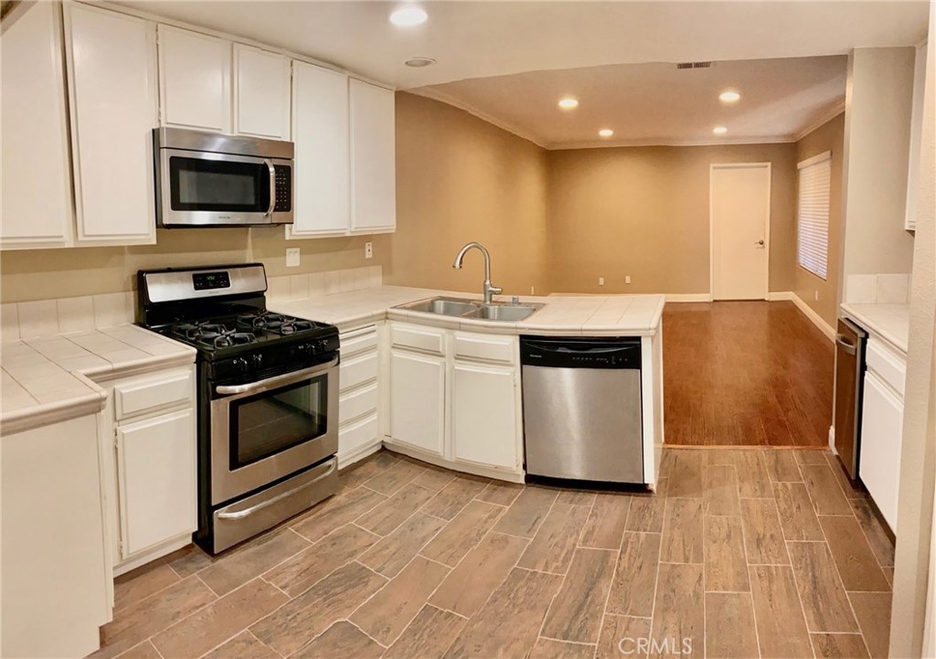 Great opportunity to live in a very desirable area, Sunny Ridge townhome. Largest 3 bedrooms and 2.5 baths with living square feet of 1,820 sq.ft. Spacious open and bright floor plan. Large living room with cozy fireplace and travertine mentor , formal dining area, dual-pane windows. Direct access 2 car attached garage with driveway for extra parking. Plenty of guest parking nearby. Private gate. Large open kitchen with plenty of cabinets. Spacious master bedroom with high ceiling and 2 large windows that make the room light and bright. Quiet and private location. Master bath has dual sinks, roman tub. Big walking closet. Newer paint. Recently laminate flooring on first level, Berber carpet, Base & Crown Moldings, kitchen stainless steel range, microwave/vent combo and dishwasher. Newer trash compactor. Large back yard with cover patio for BBQ and entertaining. Separate family room. Award winning Sunny Hills schools attendance area. Sunset Elementary, Parks Jr. High, and Sunny Hills High School. Great association amenities include pool spa and club house. Owner pays for association fee, water, trash and gardening services. Walking distance to shopping center and park. Close to Buena Park Mall and Knott Berry Farm. Must see to appreciate. Hurry. It will not last
