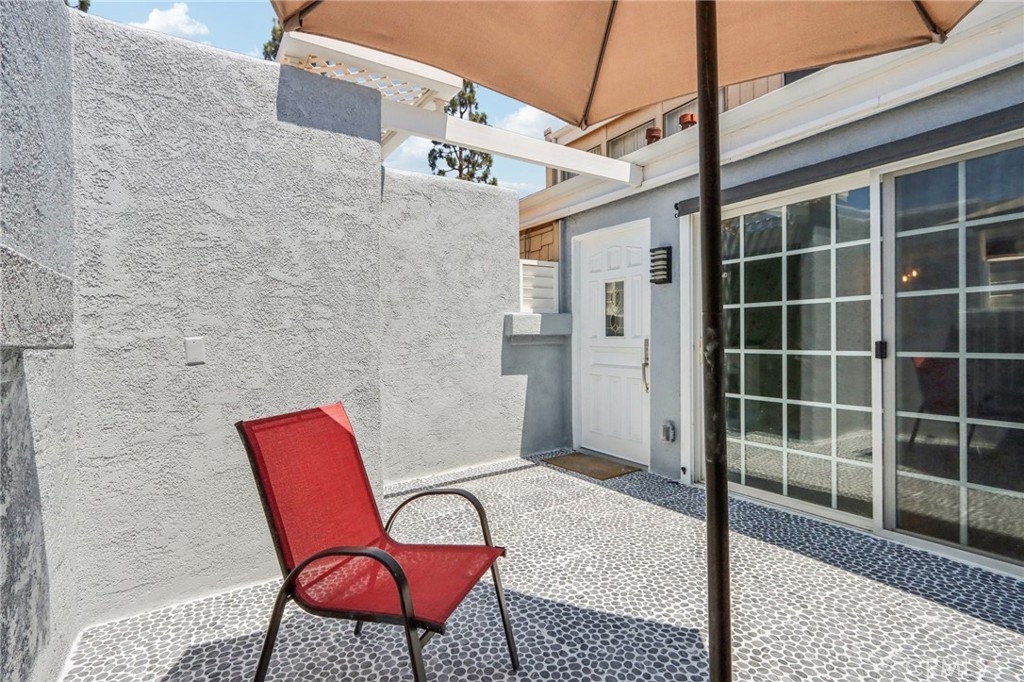 Experience unparalleled living nestled within the finest neighborhood of "The Arbors" Gated Community, which just so happens to be walking distance to Cal State Fullerton. This hidden gem boasts a west facing 1 bedroom 1 bath home, offering open concept living & a unique floorplan like no other on the market today. As you enter through the main doorway, you are greeted by a spacious private courtyard patio, with plenty of room to entertain & experience the indoor outdoor SoCal lifestyle. Through the front door awaits an open concept sun drenched living space, complete with high ceilings, wood laminate floors & a freshly painted interior. The Living Room opens into the gourmet kitchen, complete w/ granite countertops, recessed lighting & a breakfast bar. Off the kitchen is a storage room / possible pantry, along with your very own laundry room featuring a brand new combo Washer & Dryer unit, which stays with the space! Upstairs is a spacious bedroom, walk in closet & en-suite bath, boasting a new vanity, new fixtures + a recently refinished Tub/Shower. This home also offers Central A/C & Heat, plus 1 deeded covered carport parking spot located within close proximity to the unit itself. The Arbor Community offers amenities such as a newly renovated community pool, spa, clubhouse, gym, and recreation room. The Homeowners Association (HOA) covers gas, water, and trash. Conveniently located to Cal State University of Fullerton, restaurants, shopping, Brea mall, Craig Regional Park, schools, and freeways.