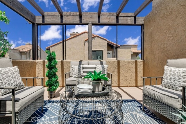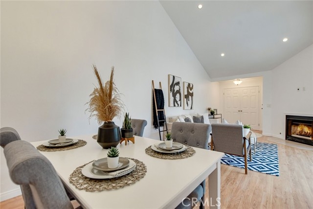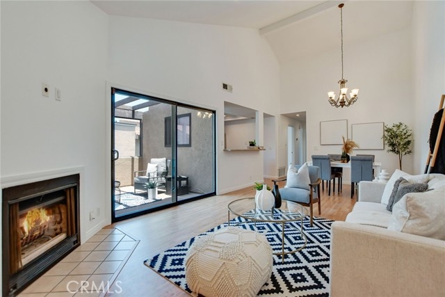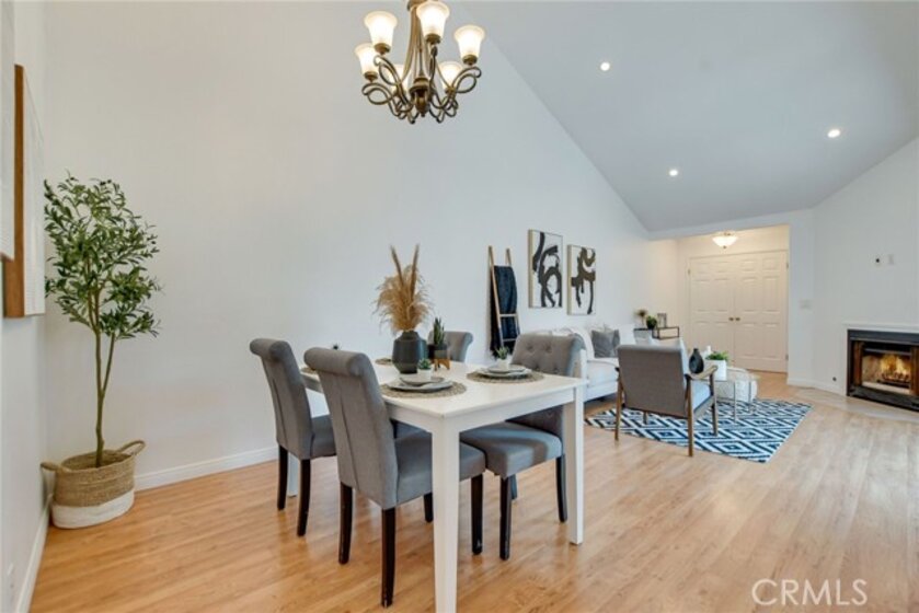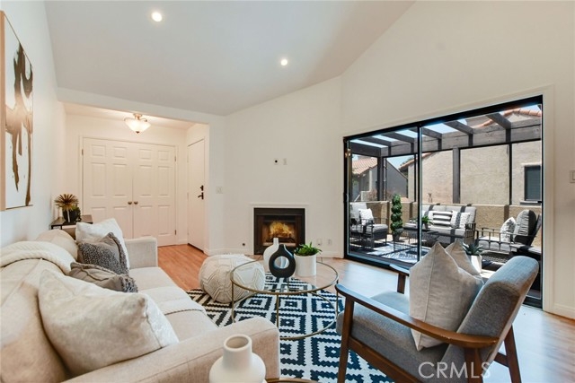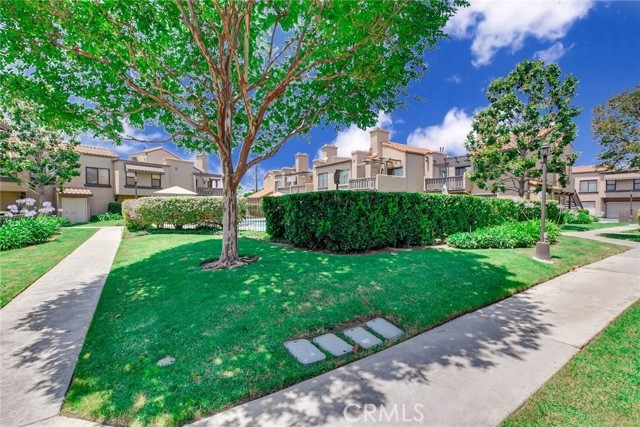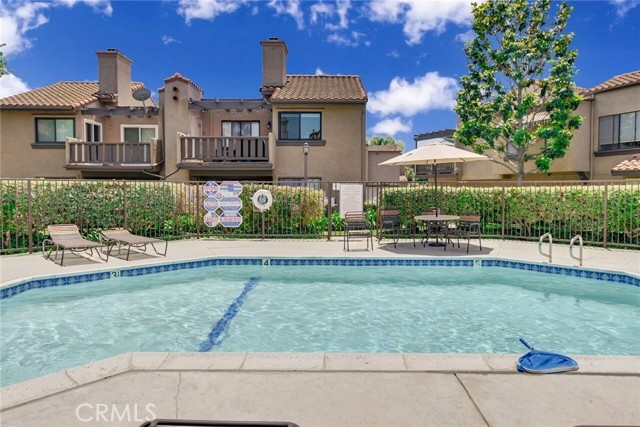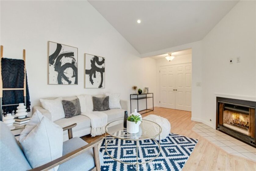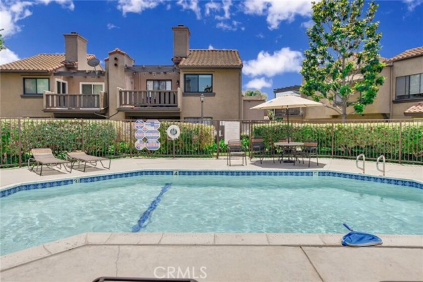 This charming upper-level, single-story end unit in Via Valencia is in the heart of Brea. This 2 bedroom 2 bath condo boasts single level living with an abundance of natural light and privacy – a rare combination, especially in condo living! The privacy begins even before you reach the front door, as this home and the neighboring unit are the only two to share a private gate entrance. Before you ascend the stairs to the front door, note the garden area and additional storage downstairs. And then once inside, you will be welcomed by the abundant natural light, high ceilings, open flow layout, a cozy fireplace, and generous private balcony that expands your living space and faces beautiful trees. The primary bedroom features a walk in closet and step-in shower. Convenient inside laundry, a detached 2-car garage just below you, and an HOA that covers water, trash removal, exterior maintenance, and of course the pool. All this within the highly desirable Fullerton School District, close to Downtown Brea’s shopping and dining, UC Fullerton’s growing campus, and more. This lovely condo is ready to welcome its new owner and welcome you HOME.