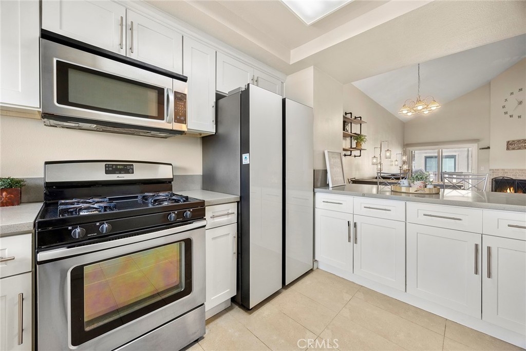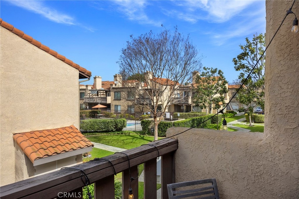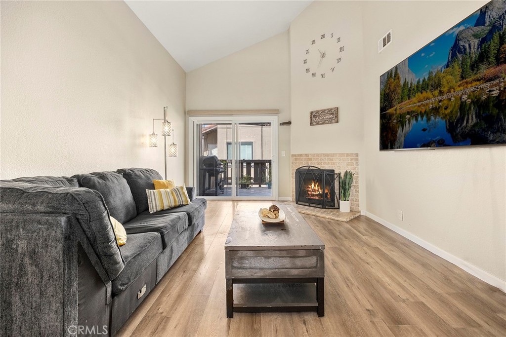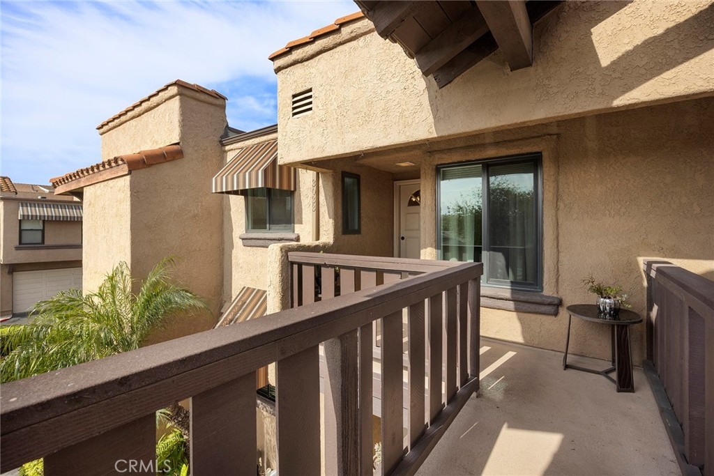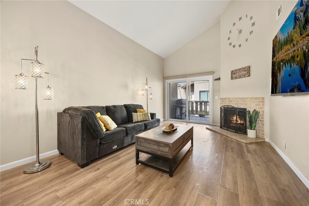 This upper-level, single story, light and bright condo located in the serene community of Via Valencia is near the heart of downtown Brea! With 2 bedrooms, 2 full bathrooms and over 1,000 SQFT, this home boasts single-level living with high ceilings, an open floor plan and natural light pouring in. The Kitchen has been tastefully upgraded with whites and greys, has a built-in microwave, gas cooktop and Quartz countertops; the Kitchen also has a lovely breakfast bar that allows for connection to the rest of the home. From the Kitchen, you will move to an open seamless layout for living and dining with high ceilings, a cozy fireplace and sliding door access to the roomy, private balcony, where you can relax and overlook the interior of the community. The bedrooms have brand NEW carpet, are spacious and the primary bedroom features an en suite bathroom with an open vanity area and a separate area for a step-in shower and restroom. With an inside laundry area that houses a full-size washer and dryer, a 2-car detached garage, this lovely, freshly painted condo is ready for you to make it yours! With only 38 units in the complex and the interior offering greenbelts and walkways, the development offers a peaceful setting. Located near shopping, dining and major freeways, this condo offers comfort and convenience - Welcome Home!