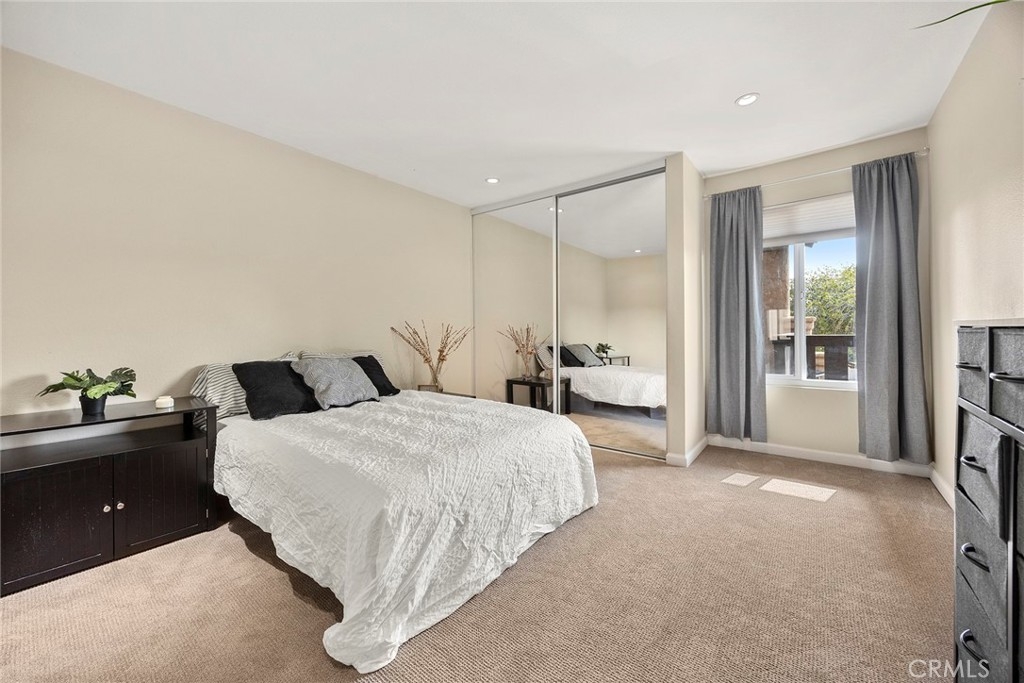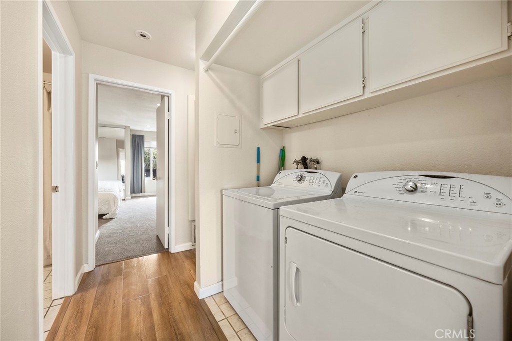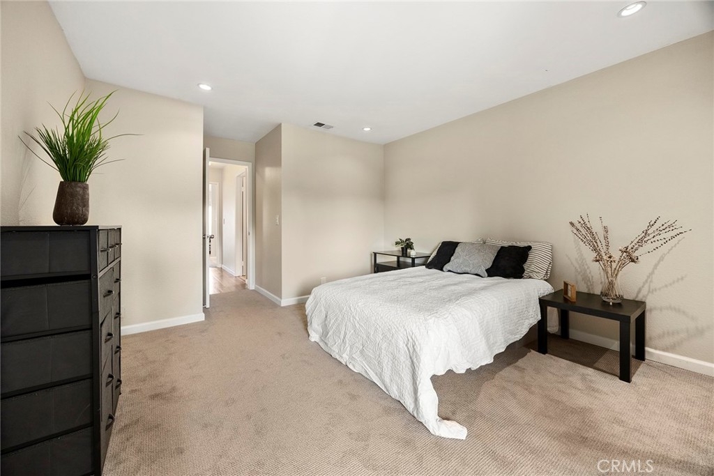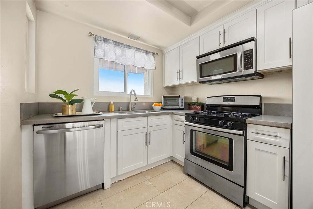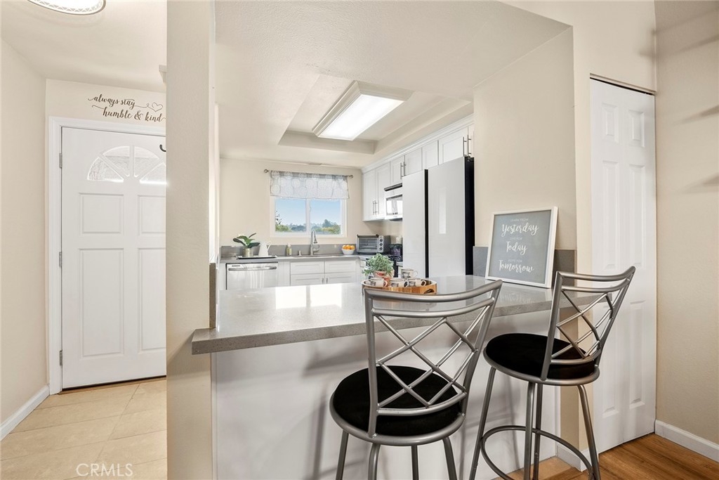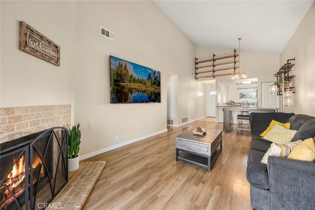 This upper-level, single story, light and bright condo located in the serene community of Via Valencia is near the heart of downtown Brea! With 2 bedrooms, 2 full bathrooms and over 1,000 SQFT, this home boasts single-level living with high ceilings, an open floor plan and natural light pouring in. The Kitchen has been tastefully upgraded with whites and greys, has a built-in microwave, gas cooktop and Quartz countertops; the Kitchen also has a lovely breakfast bar that allows for connection to the rest of the home. From the Kitchen, you will move to an open seamless layout for living and dining with high ceilings, a cozy fireplace and sliding door access to the roomy, private balcony, where you can relax and overlook the interior of the community. The bedrooms have brand NEW carpet, are spacious and the primary bedroom features an en suite bathroom with an open vanity area and a separate area for a step-in shower and restroom. With an inside laundry area that houses a full-size washer and dryer, a 2-car detached garage, this lovely, freshly painted condo is ready for you to make it yours! With only 38 units in the complex and the interior offering greenbelts and walkways, the development offers a peaceful setting. Located near shopping, dining and major freeways, this condo offers comfort and convenience - Welcome Home!