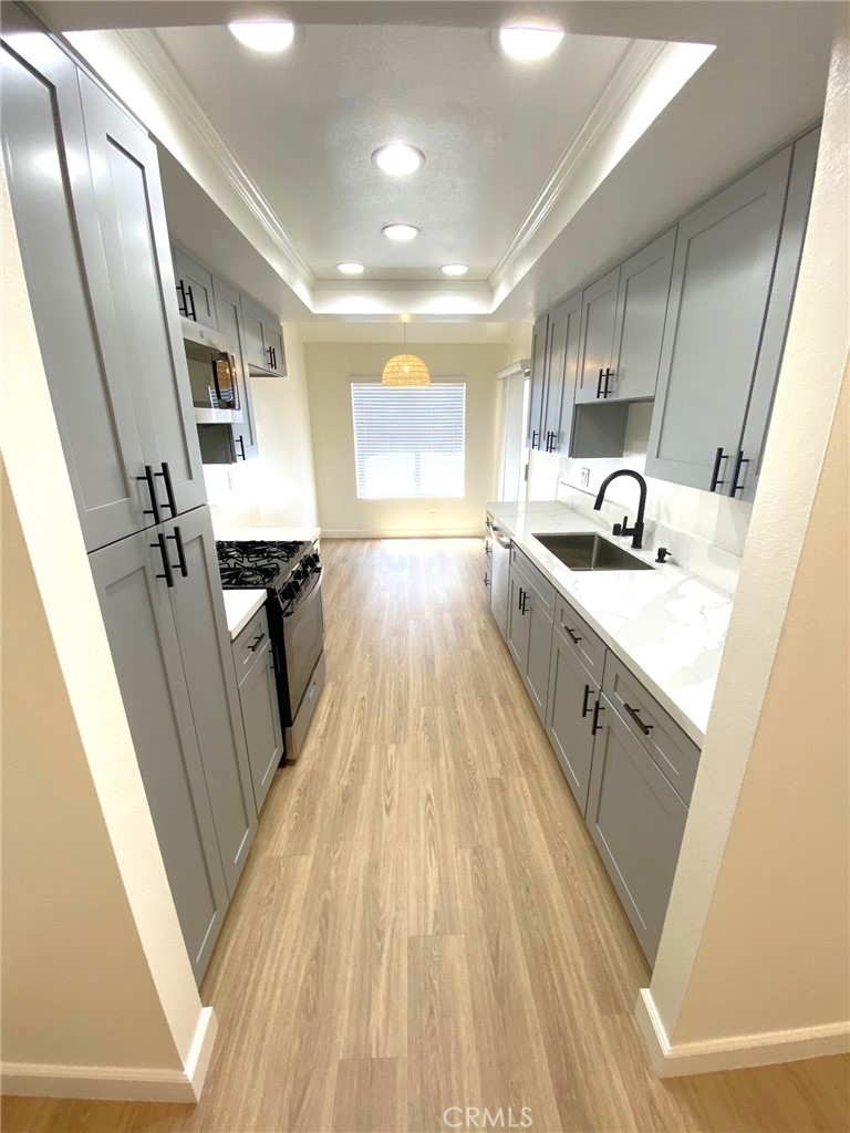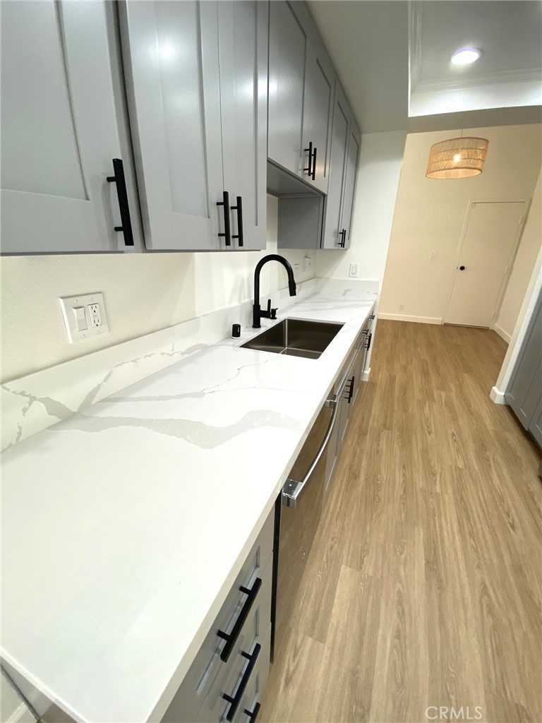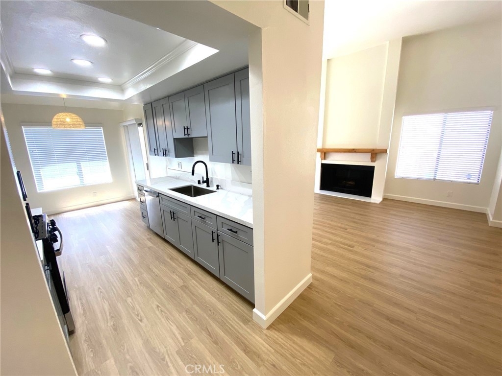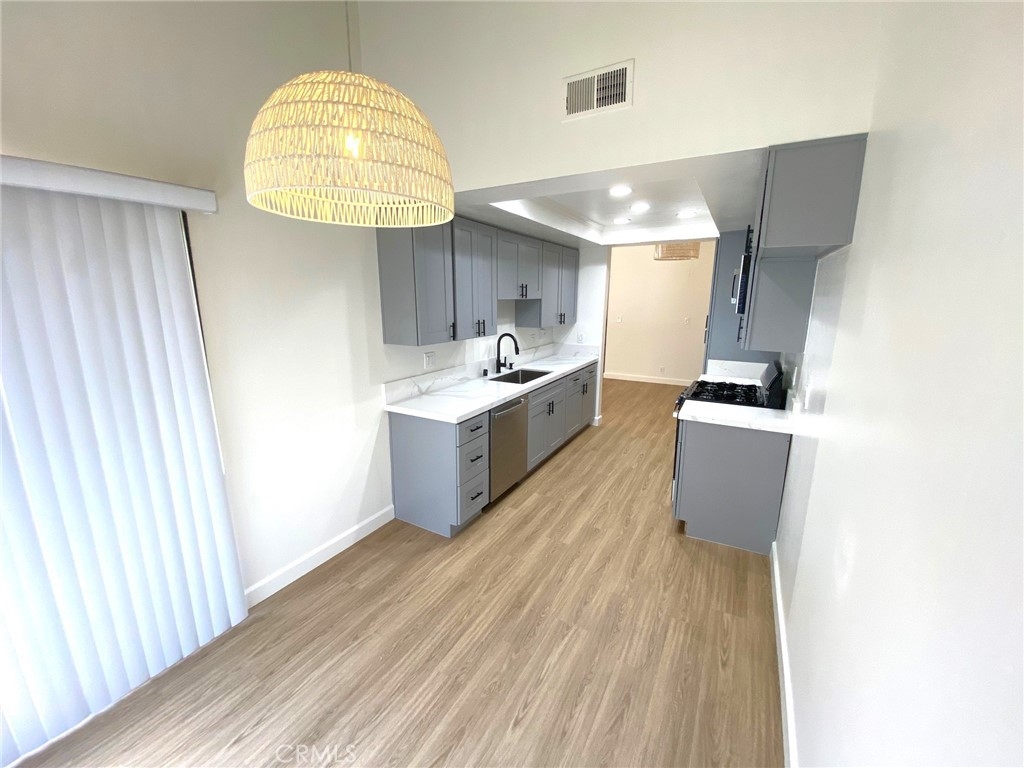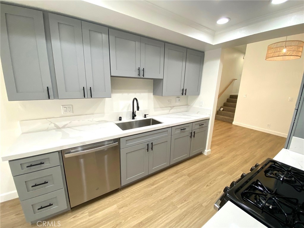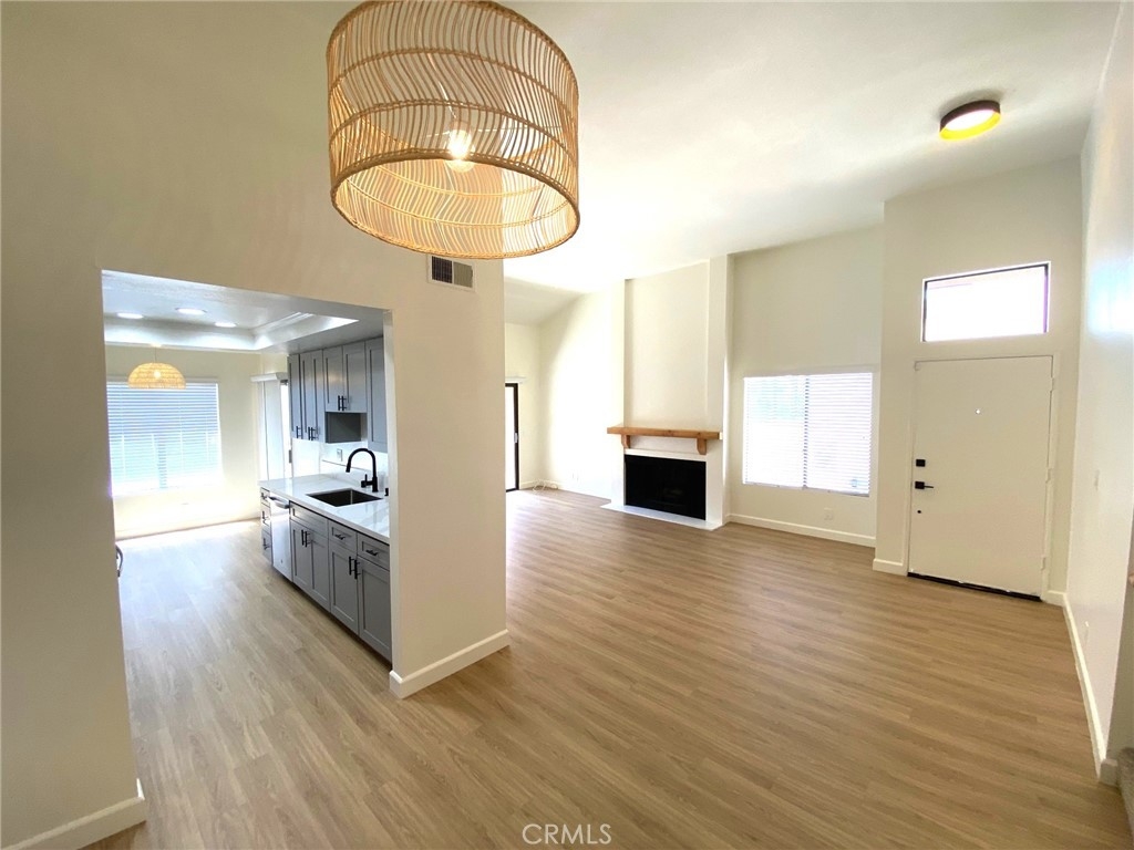 Near Cal State Fullerton! 2 bedroom 2 bath home with 2 car attached garage in the Water Gardens Community. Newly remodel Kitchen, freshly painted, new flooring through out, 2 sparkling community pools and amazing water features throughout the community. The kitchen has a beautiful white marble style counter tops, new cabinets, and stainless steel appliances. The Master bedroom is spacious with a walk in closet and on suite master bathroom. The Large Family Room with Gas Fireplace has a slider to the back patio area. New Lighting throughout. 2nd bedroom has one wall of sliding closet doors. Full second bath is located across the hall from the 2nd bedroom. Hallway has lots of storage & linen cabinets. Washer/dryer hookups are located in the finished garage w/roll-up garage door. This condo is an end unit with only 1 common wall. The garage is tucked under the unit. There are stairs from the garage into the living room. The front door and main entrance is at the living room level and there is a flight of stairs that leads up to the bedrooms. Very Close to Cal State Fullerton, Brea Mall, easily walk to stores and restaurants in the neighborhood. You will love this home and it's neighborhood.
