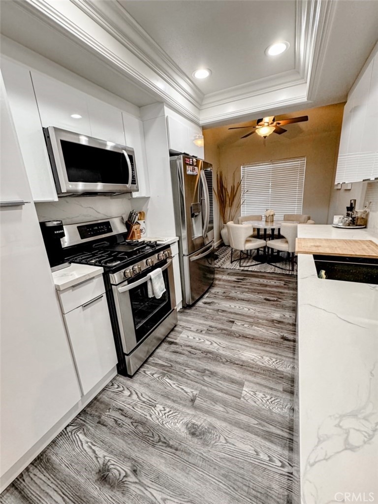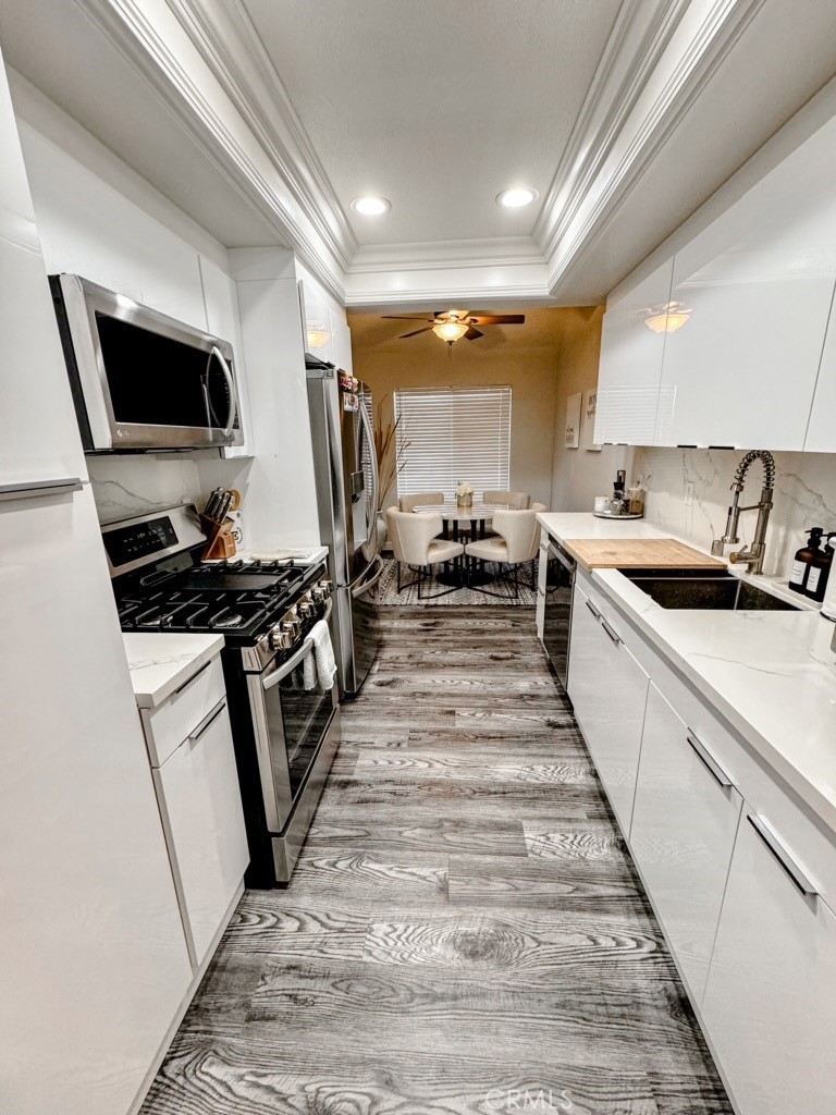Welcome Home to this beautifully remodeled and updated 3 Bedroom, 2 Bathroom, Condo in the highly desirable city of Fullerton. This North/South facing Condo is a Corner Unit with neighbors only to one side, Situated within the beautiful and peaceful Water Gardens Community, which features 3 Swimming pools, 3 Spas, and park-like grounds. Step inside from the street level front door, or the attached downstairs 2-car garage, and you'll be greeted with a light and bright, beautifully finished living room/dining room area with vaulted ceilings and new flooring. Attached to this area is the completely new All White Kitchen with All New Cabinets and Appliances and Quartz Countertops. There is also an intimate and spacious Breakfast Nook adjoining this Modern Kitchen. 6 Steps up from the main living area leads you to the shared Full Bathroom and 2 Full Bedrooms. At the end of this hallway is the Beautiful Main Bedroom with Vaulted Ceilings, private Full Bathroom, and a very spacious, enclosed, outdoor sitting area/balcony, which also connects to the 2nd Bedroom. The downstairs, attached, 2-car garage, with direct access, features new epoxy flooring, and a large storage area/laundry room. This Beautiful, Large, Open, Bright, and Airy Condo is conveniently located close to Cal State Fullerton, multiple major Freeways, and countless dining, shopping, and entertaining destinations.