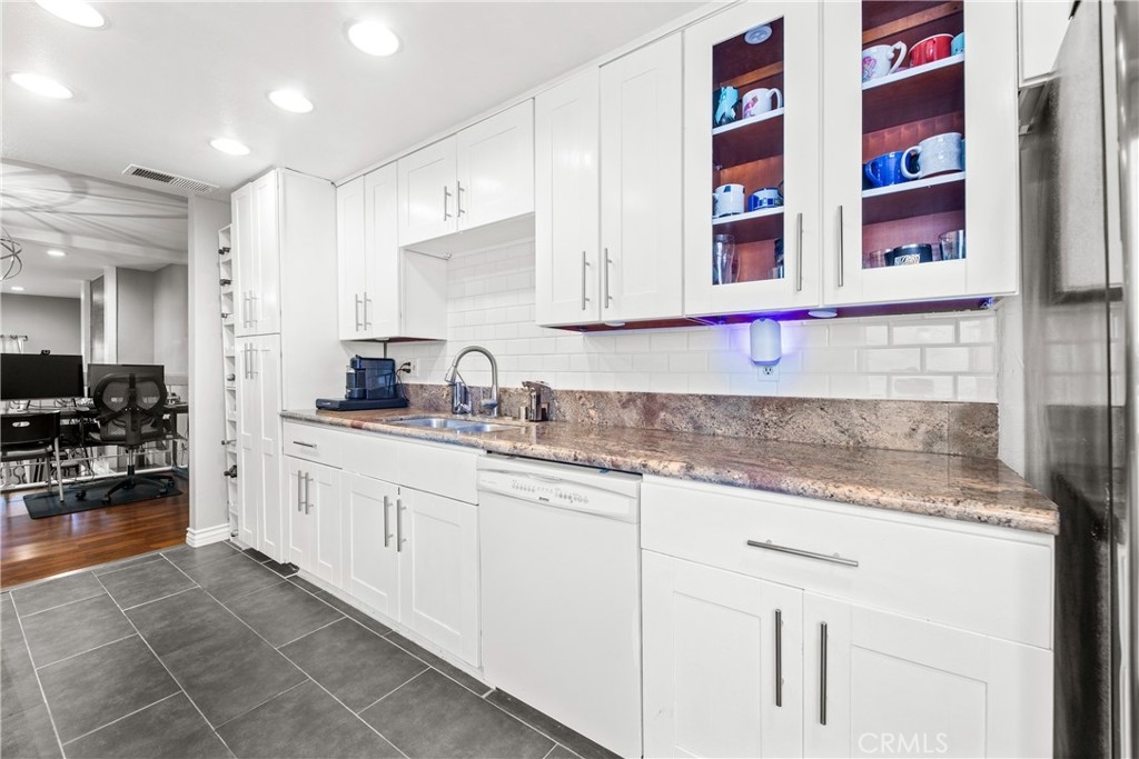 Welcome to the exclusive Water Gardens community, where resort-style living meets serene natural beauty. Nestled amidst a picturesque landscape, this home showcases 1404 square feet of exquisite living space. Embrace a lifestyle of luxury and leisure with access to three inviting pools, three relaxing spas, and three captivating water features, all within this enchanting community. Immerse yourself in the tranquil ambiance as you stroll through the tropical landscaping that envelops this serene oasis. Step inside this exceptional residence and discover an open floor plan that seamlessly blends modernity with comfort. The galley kitchen is a culinary enthusiast's dream, complete with modern cabinets, sleek hardware, and stunning granite countertops that exude elegance. The living area boasts a cozy fireplace, creating a warm and inviting atmosphere for gatherings or quiet evenings at home. The luxury vinyl flooring adds a touch of sophistication and durability, ensuring both style and practicality. With three bedrooms and three bathrooms, this home offers ample space for relaxation and privacy. The primary bedroom boasts a balcony, providing a private retreat to savor the peaceful views of the community. Step outside onto the two spacious patios, ideal for outdoor entertaining, enjoying a morning coffee, or simply basking in the beauty of your surroundings. The convenience of a two-car attached garage ensures secure parking and additional storage space. The proximity to Cal State Fullerton and a variety of shopping options makes this location truly desirable, offering easy access to education and all your retail needs. Notably, this home features new HVAC, dual-paned windows, and sliders, enhancing energy efficiency and ensuring comfort throughout the year. Don't miss this opportunity to experience the perfect blend of natural beauty, modern amenities, and convenience by scheduling a viewing of this exceptional property today.