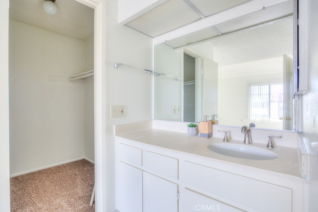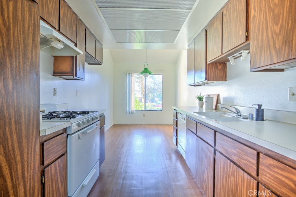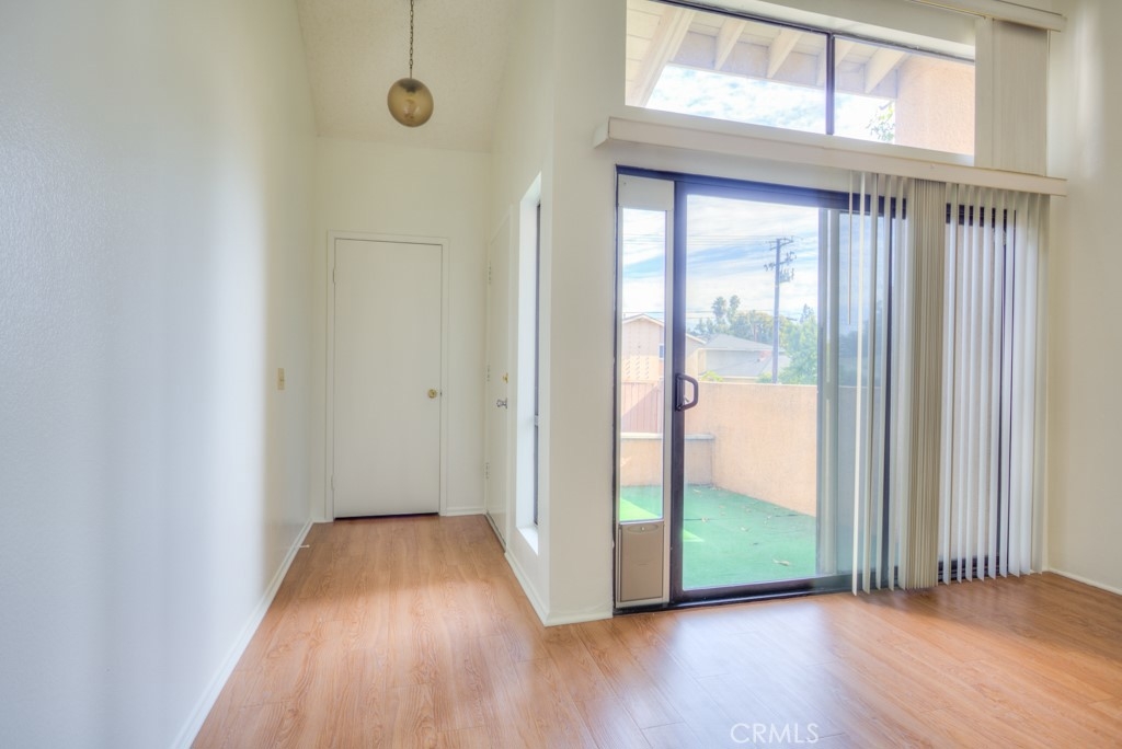 Come put your personal stamp on this beautiful END UNIT Water Gardens condo. At the front of the property, you can relax in the private gated courtyard, with room for your garden and a dining area. Inside the front door, you’ll find a huge living room with high ceilings, fresh paint, wood floors and a cozy fireplace. The huge slider at the front fills the room with natural light and gives you easy access to the front courtyard. Around the corner, the large kitchen is open to the dining nook and features tons of cabinet storage and prep space. Just off the kitchen, the lower level includes the 2-car garage with washer/dryer hook-ups and plenty of storage space. On the upper level, you’ll find both bedrooms as well as built-in storage in the hallway. The primary bedroom enjoys vaulted ceilings & an abundance of sunlight only available in the corner unit! The ensuite boasts a walk-in closet, a big vanity & a separate toilet/shower room. The guest room has access to the other full bathroom across the hall. Water Gardens is a quiet condo community where residents have access to meticulously maintained greenspaces, patios, ponds and walking paths. There’s also a swimming pool & spa area with a keyed entry. This condo is zoned to great primary/high schools and you can easily walk (20 min) or drive (4 min) to Cal-St Fullerton! There are also countless shopping, dining and entertainment options within 5 mins of your front door. Jump on Hwy 57 or 90 in no time, with Disney just 20 mins away!