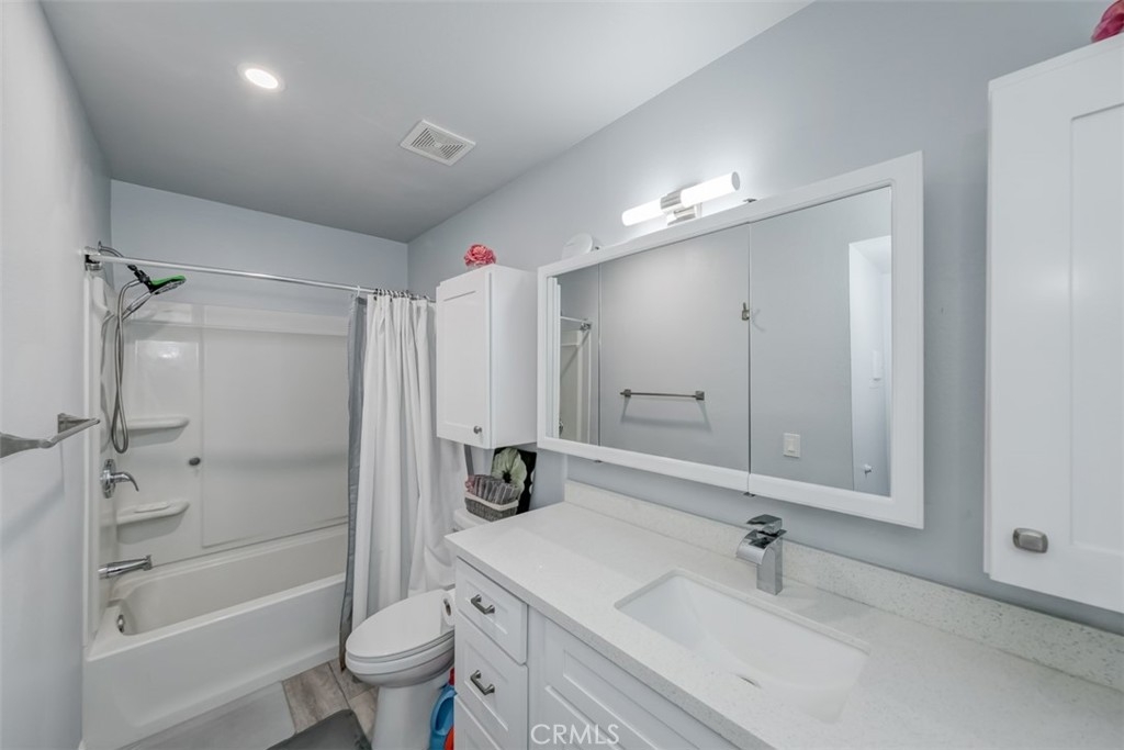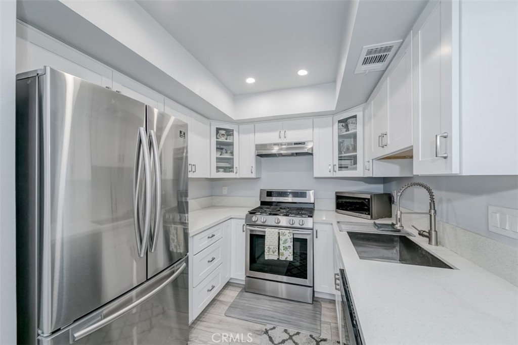 Property is located in the most desirable Fullerton area. Adorable two story condominium with spacious 2 bedroom and 2 bathroom. This home has been totally remodeled with premium materials with the finest craftsmanship. Custom laminated wood flooring throughout the home. The kitchen with custom quartz kitchen countertop, white cabinets, and stainless steel appliances. The master bedroom with upgraded closet organizer, mirrored closet doors, crown molding, 2nd bedroom has a built-in wardrobe, and walk-in enclosure shower. The home has a spacious covered patio area that comes with additional storage room. Good for entertaining family and guests. Assigned parking space along with guest parking. Custom Refrigerator and Washer & Dryer included. Conveniently located the hiking/biking trails, golf course, parks, and award winning schools(Sunset Lane Elementary, Parks Junior High and open enrollment for High School). HOA includes water, trash, insurance, and outside maintenance. Great for investment. Don't miss this Beauty!