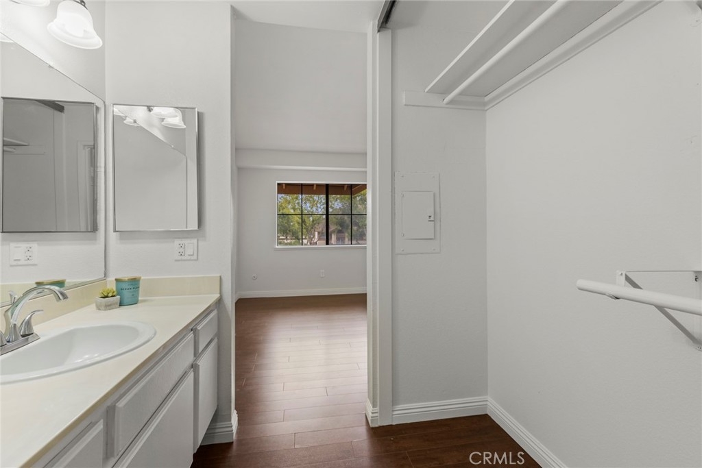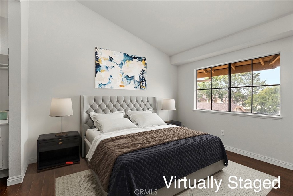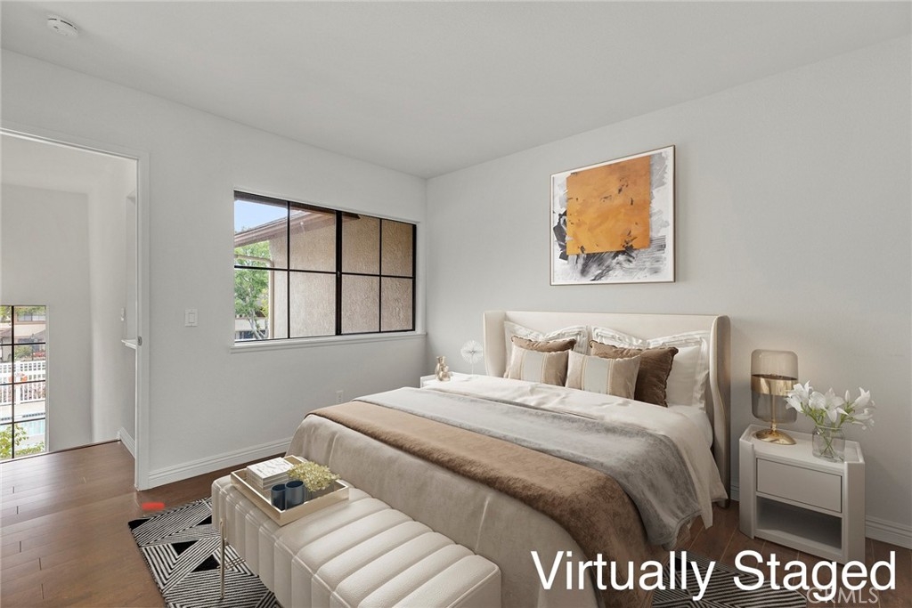 Enjoy the refreshing POOL VIEW in this charming two-story model, nestled in a peaceful community of Fullerton's WESTSIDE complex. This delightful popular floor plan features bright and airy interior with large windows inviting plenty of natural light, two master suites boasting each its own bathrooms, fresh coat of paint, handsome laminate flooring throughout, convenient inside laundry with stackable washer/dryer, and fully fenced patio facing the Sparkling Pool. Low HOA includes water & trash plus all amenities and outside maintenance including assigned two carports plus plenty of guest parking spaces. No one above or below, new plumbing completed April 2021 by HOA. Just steps away to the 105-acre Ralph Clark Regional Park and its lush greenbelt hiking trails with mature trees and tennis courts. Take advantage of all the countless shopping & dining options, local parks, golf courses, and discover why "LOCATION IS KEY".