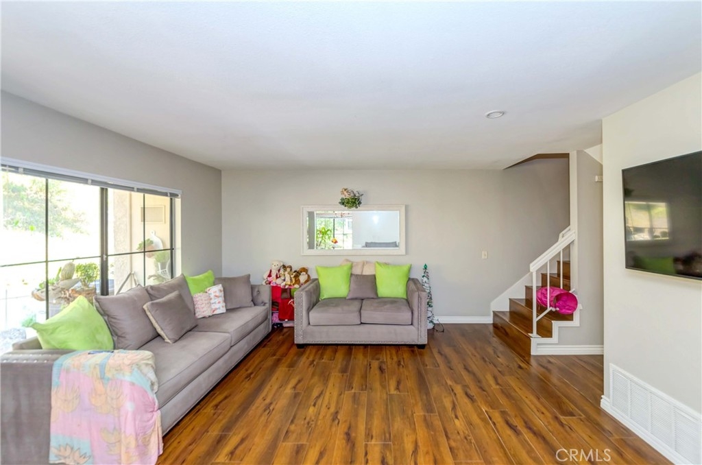 Location! Location! Location! Prime end unit nestled in highly sought after WESTSIDE complex in Fullerton. This rare recently upgraded two story, three bedroom, 2-1/2 bath model features bright and airy interior, beautiful laminate flooring throughout, cozy living room, convenient inside laundry with stackable washer/dryer in downstairs bathroom. Home equipped with central air and heating. Fully fenced patio facing greenbelt hillside and only a few steps to the two car detached garage plus plenty of guest parking. Two gated pools, Jacuzzi and plenty of lounge seating for relaxation. HOA includes water & trash plus all amenities and outside maintenance. Walking distance to Ralph Clark Regional Park and its lush greenbelt hiking trails with mature trees and wonderful atmosphere. Conveniently located to all the countless shopping, restaurants, local parks and golf courses. This is a wonderful pet friendly community. A must see.