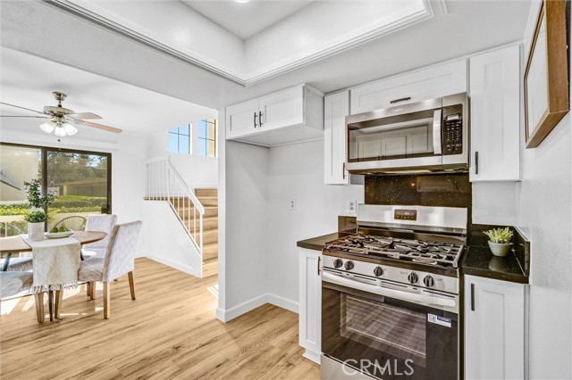 THE PERFECT OPPORTUNITY FOR A FIRST-TIME BUYER OR INVESTMENT PROPERTY IN NORTHWEST FULLERTON! Nestled in the hills of Fullerton’s popular Westside complex—one of the area’s most desirable neighborhoods—this charming home sits across from the beautiful 105-acre Ralph Clark Regional Park, surrounded by lush, mature trees and a peaceful atmosphere. This quiet and well-maintained community offers a relaxing ambiance with beautifully kept grounds cared for by the Association. This desirable end-unit features a comfortable two-story layout with no one above or below. The home offers two generous primary bedrooms, each with its own bathroom. The interior is enhanced by beautiful brand-new vinyl flooring throughout. The stunning remodeled kitchen features black granite countertops, upgraded white shaker cabinets, tray ceiling, and brand-new stainless steel/black appliances, including a 5-burner gas range and dishwasher. A convenient casual dining area, a cozy living room, a downstairs half-bathroom, and handy inside laundry with brand-new washer and dryer (included in the sale) add to the home’s appeal. One of the primary bedrooms offers a vaulted ceiling and mirrored closet doors. One of the bathrooms upstairs has been completely remodeled with a modern walk-in shower. Additional upgrades include fresh interior paint, recessed lighting, ceiling fans, blinds, and crown molding. Numerous windows fill the home with natural light, creating a bright and airy atmosphere. Central air conditioning and heating ensure year-round comfort. Just steps away are two detached carports plus plenty of guest parking. A large sliding door leads to an extra-large, fully fenced front patio—perfect for pets, gardening, barbecues, or enjoying your morning coffee. Enjoy the community amenities, including a pool, spa, and playgrounds. Association dues ($365/month) cover water, trash, fire insurance, pool, spa, playgrounds, and all exterior maintenance. Conveniently located near shopping, restaurants, grocery markets, parks, and golf courses. A 10+ property!