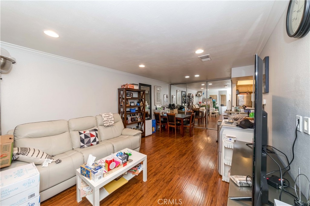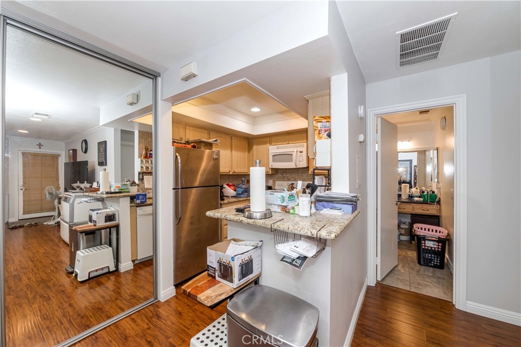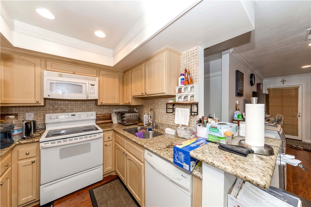 Beautiful ground level, single unit, with an open floor plan within Fullerton's "Westside" complex. Surrounded by beautiful greenery and within walking distance of Ralph Clark Regional Park. The "Westside" complex also has pools, a spa, and a children's playground. Laminated flooring throughout, granite counter tops, inside laundry, and recessed lighting. HOA dues include water/trash and outside maintenance. One assigned carport plus plenty of guest parking nearby.