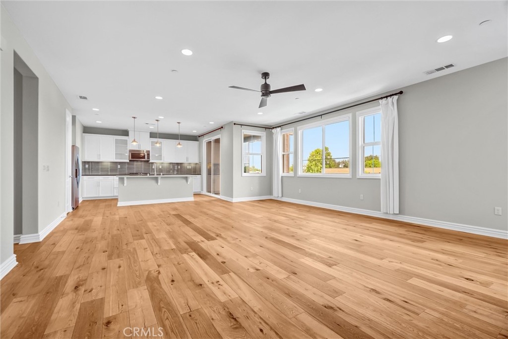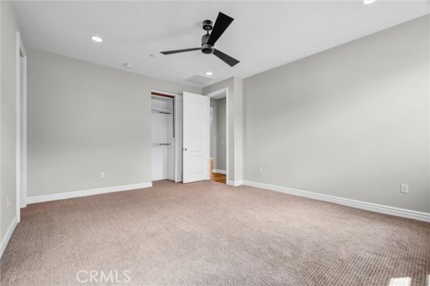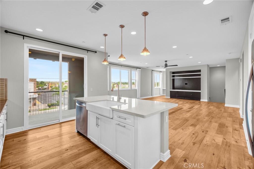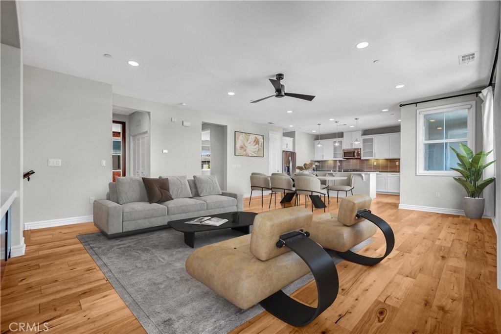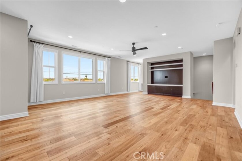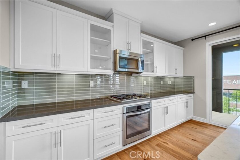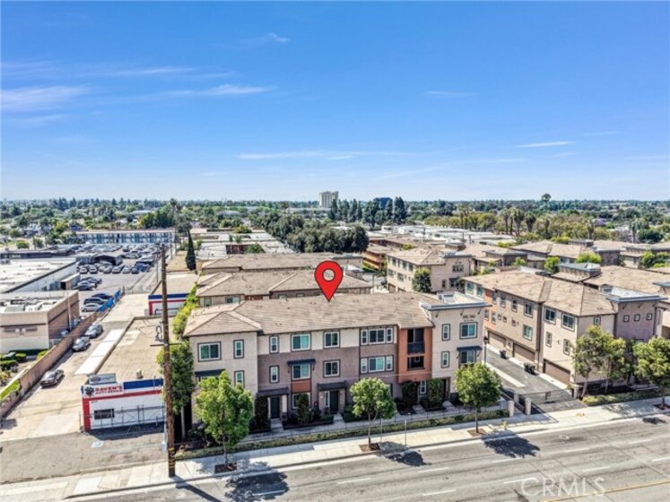 Beautifully designed 3-bedroom, 2-bathroom flat-style condo offering approximately 1,808 sqft of modern & comfortable living in the heart of Fullerton. This thoughtfully planned home features a single-level living layout above the garage, combining the privacy of a townhome with the ease & convenience of a flat. The entry welcomes you with direct access to an attached garage, complete with built-in storage, a custom workbench, and a whole-house Halo water filtration system. Upstairs, the spacious great room is filled with natural light & enhanced by a dedicated tech area, media niche, ceiling fans, and dimmable recessed lighting throughout the home, creating an ideal setting for both everyday living & entertaining. The well-appointed kitchen features a gas cooktop, built-in microwave hood, oven, and refrigerator, and opens to a private deck through sliding glass doors, perfect for outdoor dining or unwinding at the end of the day. A convenient laundry closet includes a washer and dryer. The home also features 9-ft ceilings and 8-ft doors, adding to the sense of openness and modern appeal throughout. The primary suite offers a peaceful retreat, complete with custom Roman shades, a ceiling fan, and two closets—one walk-in and another with built-in drawers for added storage and organization. The en-suite bathroom features dual vanities and a walk-in shower. Additional bedrooms are well-sized & feature built-in closet organizers, providing both comfort and functionality. Ideally located with easy access to the 5, 57, & 91 freeways, this home is perfect for commuters seeking convenience without sacrificing comfort. Enjoy close proximity to multiple shopping centers, dining options, Costco, Target, Walmart, and more. Located within the highly regarded Fullerton Joint Union High School District, this home offers a well-balanced lifestyle of accessibility, comfort, & modern living.