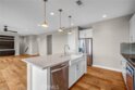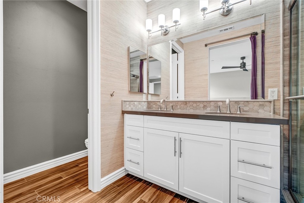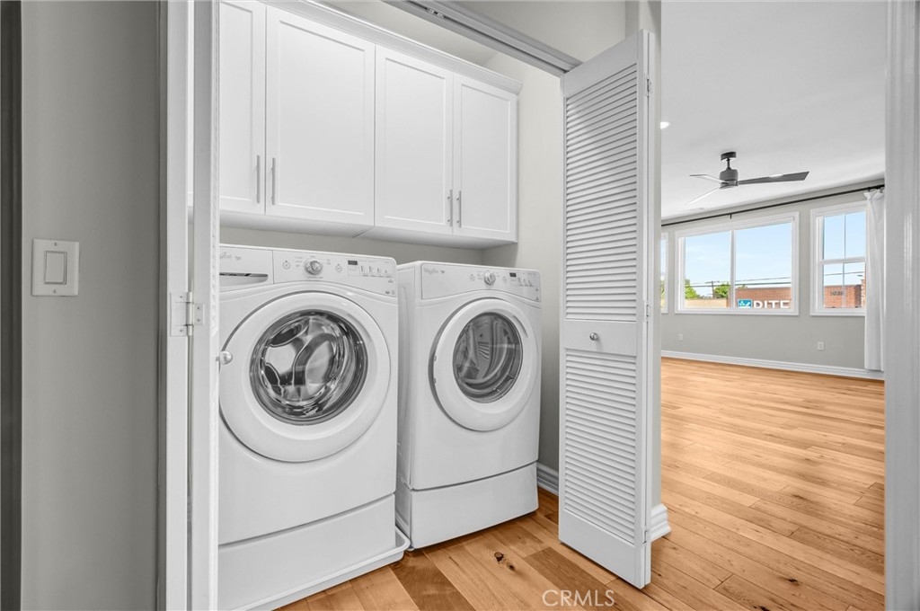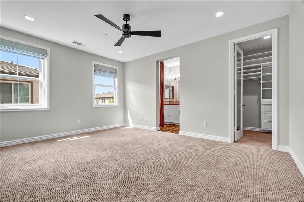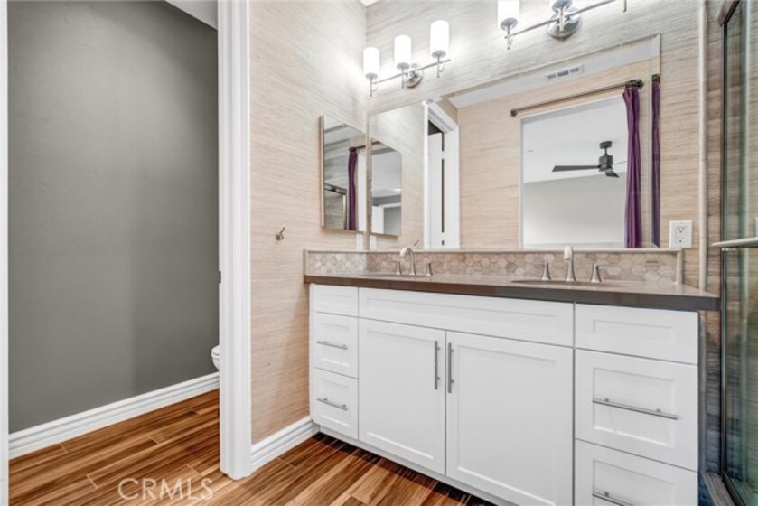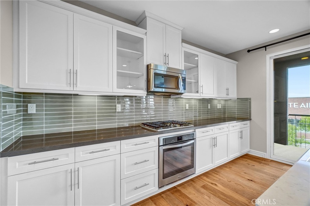 Beautifully designed 3-bedroom, 2-bathroom flat-style condo offering approximately 1,808 sqft of modern & comfortable living in the heart of Fullerton. This thoughtfully planned home features a single-level living layout above the garage, combining the privacy of a townhome with the ease & convenience of a flat. The entry welcomes you with direct access to an attached garage, complete with built-in storage, a custom workbench, and a whole-house Halo water filtration system. Upstairs, the spacious great room is filled with natural light & enhanced by a dedicated tech area, media niche, ceiling fans, and dimmable recessed lighting throughout the home, creating an ideal setting for both everyday living & entertaining. The well-appointed kitchen features a gas cooktop, built-in microwave hood, oven, and refrigerator, and opens to a private deck through sliding glass doors, perfect for outdoor dining or unwinding at the end of the day. A convenient laundry closet includes a washer and dryer. The home also features 9-ft ceilings and 8-ft doors, adding to the sense of openness and modern appeal throughout. The primary suite offers a peaceful retreat, complete with custom Roman shades, a ceiling fan, and two closets—one walk-in and another with built-in drawers for added storage and organization. The en-suite bathroom features dual vanities and a walk-in shower. Additional bedrooms are well-sized & feature built-in closet organizers, providing both comfort and functionality. Ideally located with easy access to the 5, 57, & 91 freeways, this home is perfect for commuters seeking convenience without sacrificing comfort. Enjoy close proximity to multiple shopping centers, dining options, Costco, Target, Walmart, and more. Located within the highly regarded Fullerton Joint Union High School District, this home offers a well-balanced lifestyle of accessibility, comfort, & modern living.