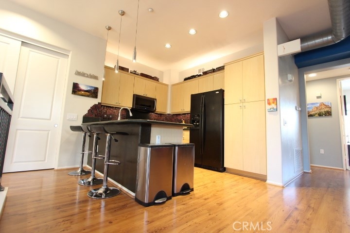 Proud to present one of the Largest Floor Plans with 3 Bedrooms plus 3 Full Bathrooms END UNIT located in HIgh-End Soco Walk District Lofts by Down Town Fullerton. This Loft Features fabulous upgrades with CUSTOM BRICK ENTRY along with CUSTOM STORAGE SPACE next to ONE FULL BEDROOM WITH ONE FULL BATHROOM downstairs. Industrial Staircase leads up to the HUGE Loft Space with 10-foot ceiling next to the CUSTOM KITCHEN with additional Closet Space. There is a MASTER BEDROOM with its own MASTER BATHROOM next to the 2nd BEDROOM with the access to the Private Balcony and the 2nd FULL BATHROOM in the Hallway. Additional Features including All Stainless Steel Appliances, New Interior Paint, Custom Ceiling Fans, New Blinds, SPECIAL LIGHT FIXTURE, SHOWCASE and the Laundry Closet upstairs as well as the OVERSIZE GARAGE SPACE specially made for this LOFT. The Soco walk Community is just a walking distance to Metro Link and Downtown Fullerton Entertainment hot spots. You will feel like in an upscale N.Y. Loft with the professional interior design. DON'T MISS THIS HARD TO COME BY OPPORTUNITY!!!