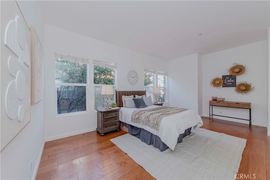 Gorgeous Townhome in Desirable Amerige Heights! Beautifully maintained 3-bedroom, 3-bath townhome featuring two spacious primary suites—one upstairs and one downstairs—each with en-suite bathrooms and walk-in closets. Bright and open floor plan with wood flooring throughout and an abundance of natural light. The modern kitchen boasts granite countertops, a center island, and a private balcony window, perfect for casual dining or entertaining. The home also includes a secondary bedroom with a large window, a full bath, ample storage, and a dedicated laundry space. Enjoy the convenience of a 2-car attached garage with direct access. Community amenities include high-speed internet, pool, tennis courts, parks, and playgrounds. Located within walking distance to top-rated schools—Robert C. Fisler Elementary & Junior High, Sunny Hills High School, and Montessori & Education Center. Close to Amerige Heights Town Center with shopping, gym, bookstore, and restaurants.