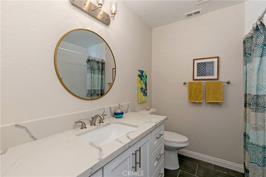 Situated in the coveted Malvern Creek community, this desirable townhouse-style condo has been expertly remodeled. With 2 bedrooms, 2.5 bath & loft you'll find many upgrades throughout including recessed lighting, new stylish laminate flooring and baseboards, new central A/C & heat, and attached 2-car garage with laundry hookups. Upon entry, you are welcomed by vaulted ceilings, an open airy layout, and a herringbone tile foyer. The living room is open on either side providing an effortless flow. Large sliding glass doors lead to your backyard area with concrete patio and new grass. The remodeled kitchen is open to the dining area and has been redesigned with quartz counters, custom white shaker soft close cabinetry, herringbone tile back splash, stainless steel appliances, and breakfast bar. The stylish half bath is located downstairs for your and your guests' convenience. Upstairs, enjoy the spacious loft offering versatile potential for its' use. Adjacent you'll find the remodeled full bathroom with new quartz counters, custom cabinetry, tile floors, and subway tiled bath. The expansive master bedroom is truly a retreat of your own with vaulted ceiling, large walk-in closet, and attached en suite bathroom complete with dual sinks, new quartz counters, custom cabinetry, and frameless glass shower. This well kept community offers a pool and spa. Wonderful location close to award winning schools and shopping and dining of Amerige Heights Town Center.