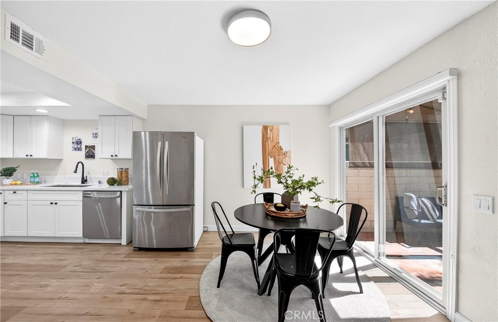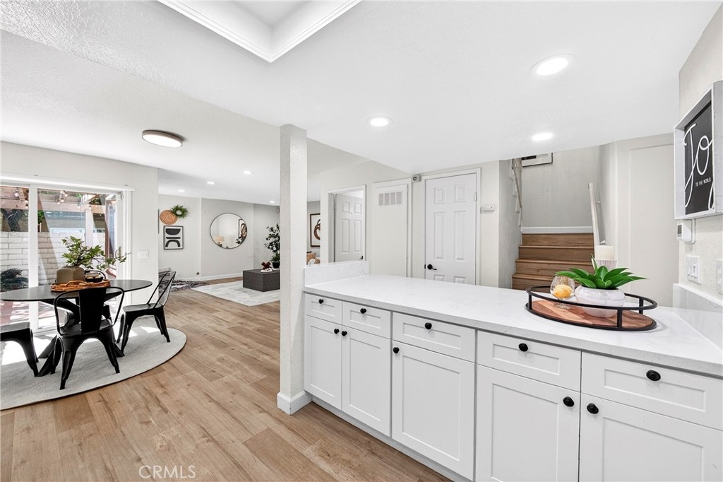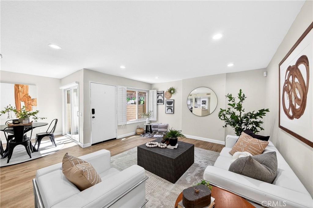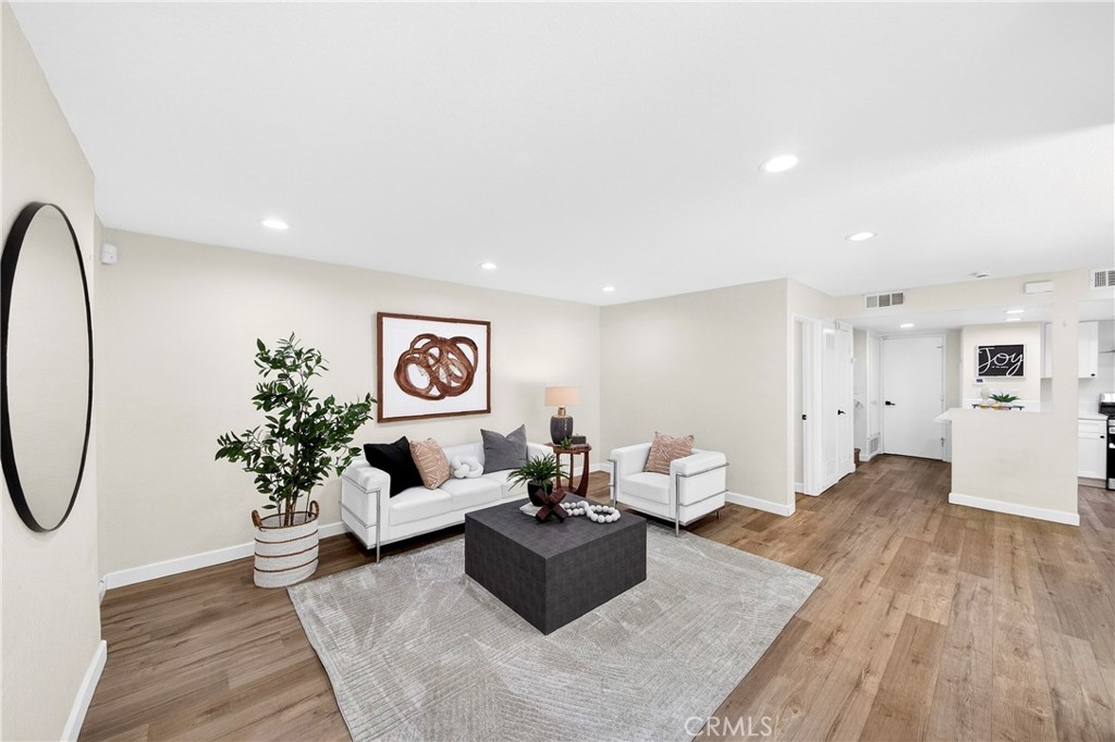 Welcome to this beautifully updated 3-bedroom, 2.5-bathroom residence in the desirable Mark III Townhome community, centrally located in the heart of Fullerton. This move-in-ready home features high-quality laminated flooring throughout, offering a clean and modern feel. The heart of the home is the upgraded kitchen, which boasts newer cabinetry and premium quartz countertops, providing both style and ample storage. All bathrooms have been tastefully remodeled with contemporary finishes to meet the needs of a modern lifestyle. The functional floor plan is designed for comfortable living and receives pleasant natural light. A significant benefit of this home is that the HOA dues conveniently include insurance, water, trash, and exterior maintenance, offering great value and true low-maintenance living. Residents of this well-maintained community enjoy a serene environment with access to a sparkling pool and lush common areas. Perfectly situated in the 92835 zip code, this home is just minutes away from award-winning schools, popular shopping centers, and a variety of restaurants. Outdoor enthusiasts will appreciate the close proximity to scenic trails at Craig Regional Park and several premier golf courses nearby. With its extensive interior upgrades and prime central location, this exceptional townhome offers an incredible turnkey opportunity. This community is FHA and VA approved!