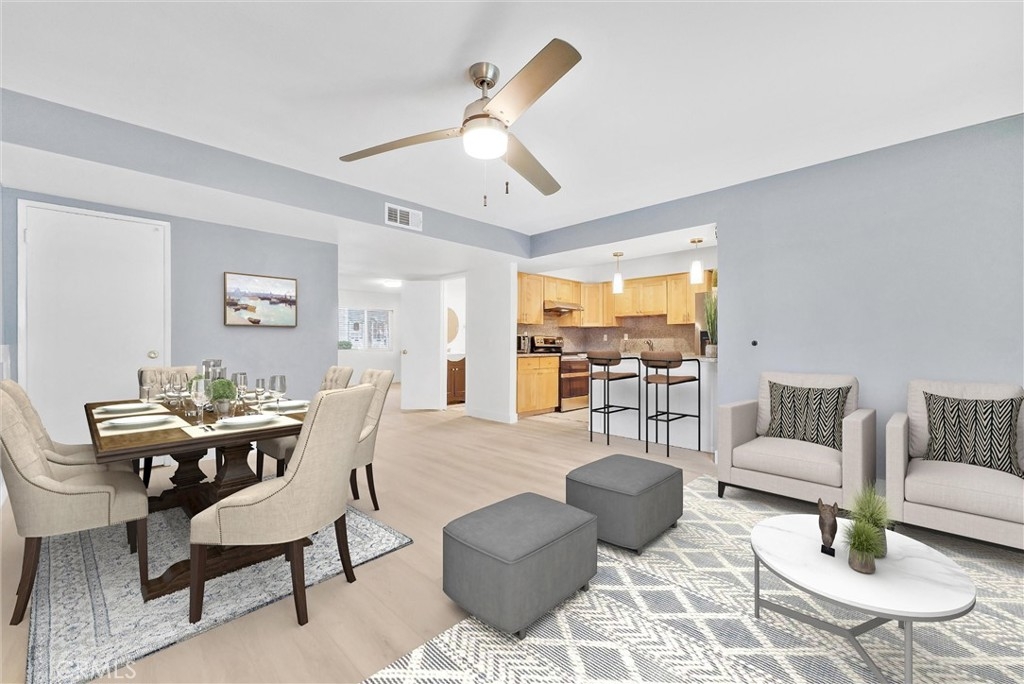 Affordable, rare-find 4-bedroom, 3-bath large townhome is now within reach with a new pricing! Come tour this beautiful and upgraded 2-story townhouse with 4 bedrooms, 3 baths, 1776 sqft along with an attached 1-car garage and a designated carport only few steps away. Situated in the highly desirable Foothill Village Community and impressive from the curb with tree-lined landscaped walkways, the front door welcomes you into a light and airy floor plan. The living room with a cozy fireplace, large windows, and the wainscoting wall exerts homey feel and extra warmth. The corner space by the stairway is roomy enough for a desk, accent chair, cabinet or any décor idea you desire. Open kitchen with upgraded newer granite countertops, cabinetry in natural wood color, and a large breakfast bar open to the family room/dining area is where you nurture and entertain. Through the sliding door is a good-sized enclosed patio with cover, allowing you to enjoy it rain or shine. Passing by the kitchen is an individual laundry area, and across is a cabinet area with extra storage space. Further down is the direct access door to the 1-car garage with epoxy floor. The upgraded downstairs bathroom with an additional shower shall impress and delight you. Gorgeous SPC planks flooring throughout the main floor. Beautiful laminate wood floor all over the second floor. The master features an en-suite bathroom with newer vanity and a walk-in shower. Three nice-sized secondary bedrooms along with an upgraded hallway bath completes the upstairs layout. Ceiling fan in all bedrooms and the family room. Wonderful association amenities include community poo/spa, playground and recreation room. The HOA due includes water and trash. Convenient to Cal State Fullerton, downtown Fullerton, shopping, restaurants, and freeways. This is truly a not-to-miss property.