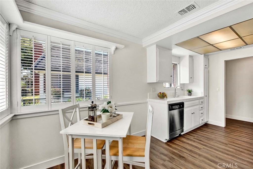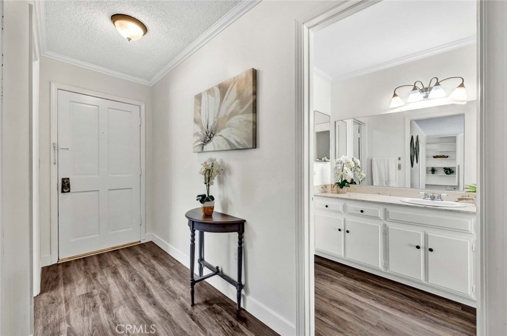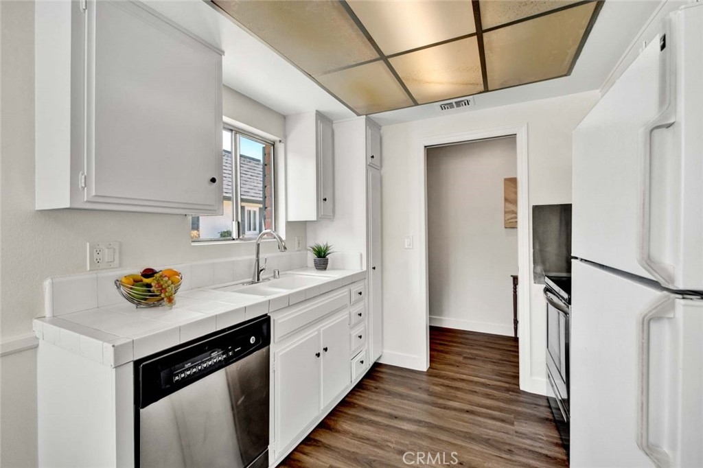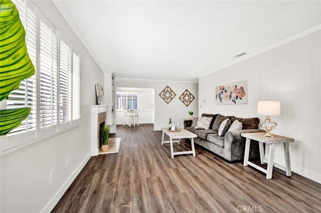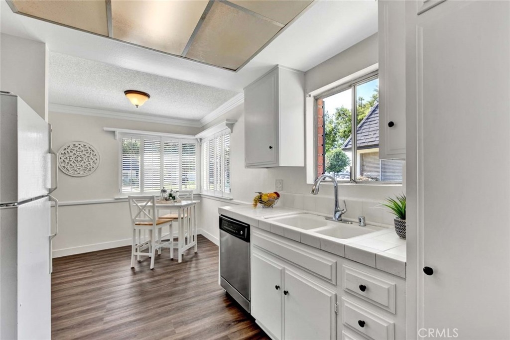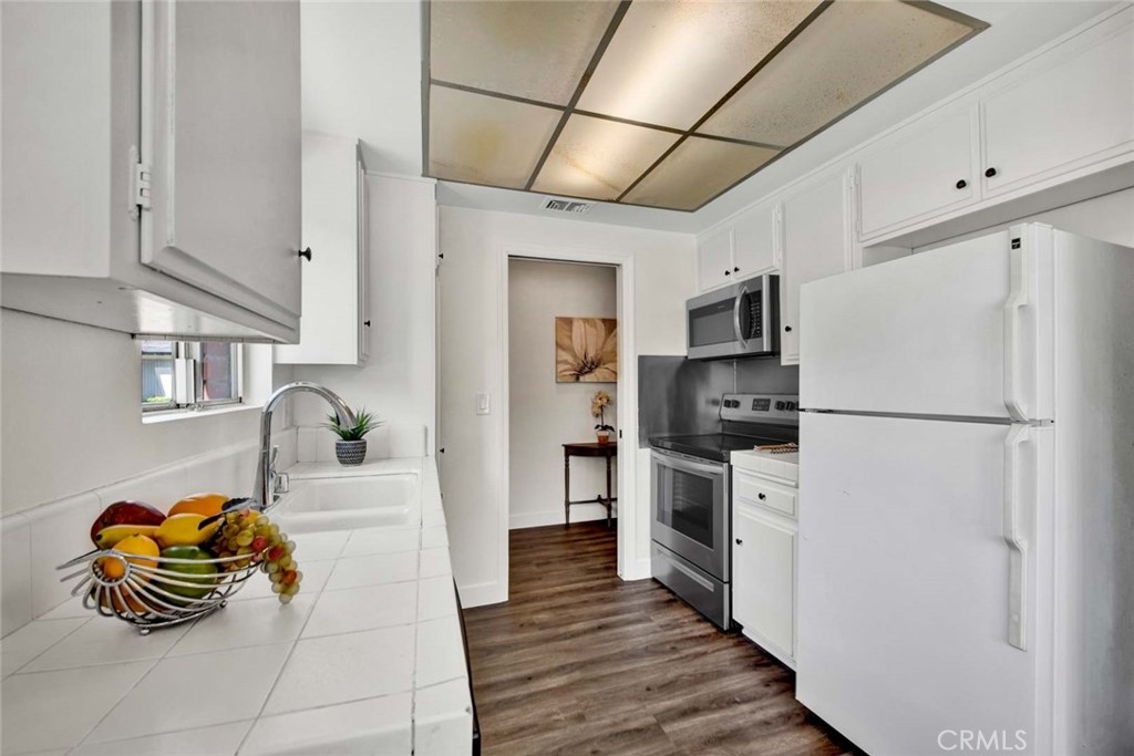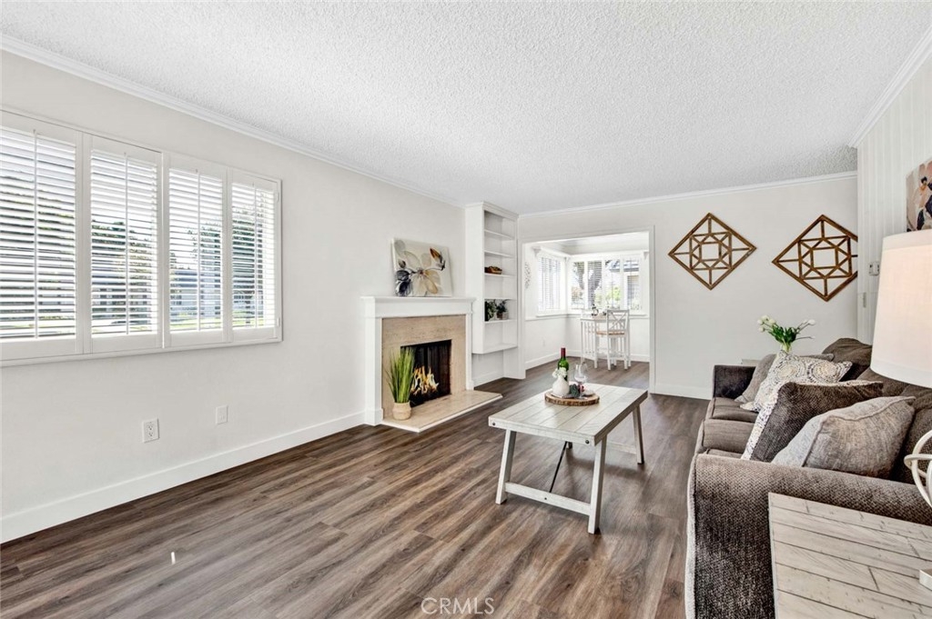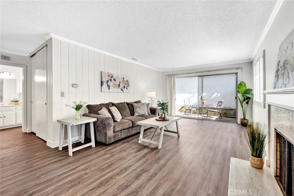 Welcome to your charming single-story haven in the highly sought-after Victoria Gardens community, perfectly designed for first-time homebuyers or those looking to downsize. This exceptional location is just a short walk from the association pool, enhancing the allure of the property. With no neighbors above or below, you’ll enjoy a sense of privacy and tranquility. Step inside to find a spacious living room featuring a cozy fireplace, nicely flowing into the adjacent dining area. This gorgeous one-bedroom, one-bath corner unit boasts a freshly painted front door and brand-new vinyl plank flooring. The kitchen features a five-burner stainless steel Frigidaire range, a stainless steel microwave, white cabinetry with a pantry, a GE stainless steel dishwasher, a new stainless steel faucet, and a matching white refrigerator. A sliding glass door opens onto a generous, private patio, ideal for gatherings, relaxation, and summer BBQs. Conveniently located steps away is your gated 1-car assigned parking carport, complete with overhead storage units, providing ample space for both your vehicle and extra belongings. The interior has been newly painted, adding a fresh touch throughout. The centerpiece of this home is the expansive living room, measuring an impressive 22' x 13'. It showcases crown molding, extra tall baseboards, and plantation shutters, all anchored by a beautiful fireplace with a wood mantle, stone façade, and hearth. Adjacent built-in bookshelves add character, while a quaint breakfast nook offers a cozy spot for morning meals. The generously sized bedroom features modern wood siding and ample closet space. The bathroom includes a newer toilet, ceramic tiled walls, and a new shower wand. You’ll also appreciate the easy access to freeways #91 and #57, making commutes a breeze. This home is ideally situated just minutes from downtown Fullerton, Cal State Fullerton, and highly ranked schools such as Troy High and Acacia Elementary. With nearby shopping, restaurants, and schools, this condo encapsulates the essence of convenient, low-maintenance living—perfect for those embarking on their homeownership journey or seeking a cozy retreat in their golden years. HOA has an incredible entertainment area and pool area, as well as cover water, trash and hot water! Don’t miss the opportunity to call this delightful property home!