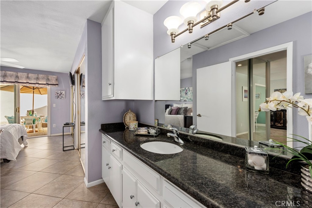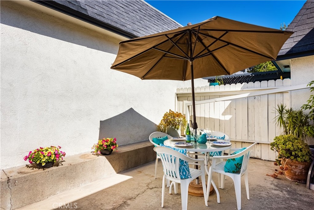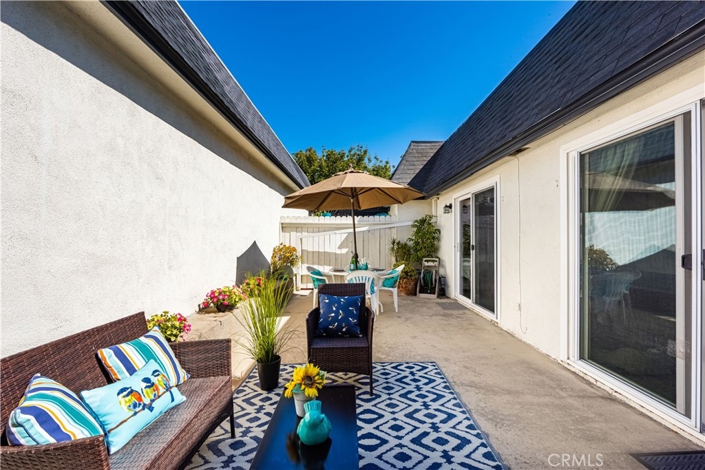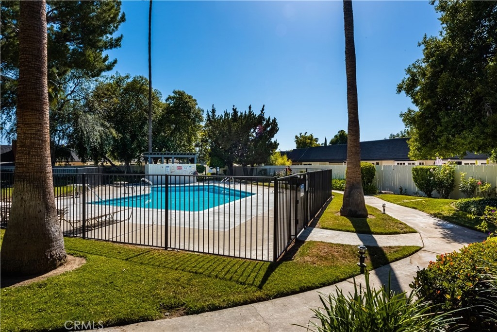 Looking for a single story home? Tired of steps and stairs? Don't miss the opportunity to own this lovely move in ready end unit condo. Kitchen has been upgraded with granite counter tops, pantry, recessed lighting, crown molding and plantation shutters. There is also a built-in desk which is perfect for those who "work from home". Living room is complete with ceiling fan, recessed lighting and cozy fireplace for those chilly evenings. You can also step out the vinyl slider and enjoy the private patio. There is plenty of room for you to BBQ or just relax after a long day's work. Bedroom has dual mirrored closets and overhead ceiling fan. There is also a vinyl slider to access the patio. Bathroom has also been upgraded with a granite counter top and there are plenty of cabinets for storage. The step in shower also has a seat and custom shower enclosure. Additional features include tile flooring throughout, scraped ceilings, air conditioning and heating, vinyl windows and sliding doors. Carport for one car is gated and also has a storage area. There is ample guest parking which is just a few steps away. Association includes water, trash and a swimming pool. You will love living in this community which is walking distance to shopping, dining and transportation. Short drive to Fullerton College, CSUF and Brea Mall. Home is also located in the award winning Troy High School district. Your next home is ready for you!!