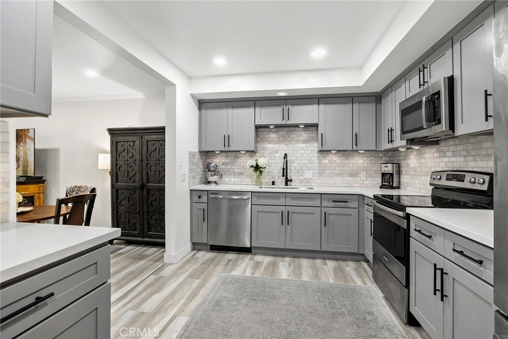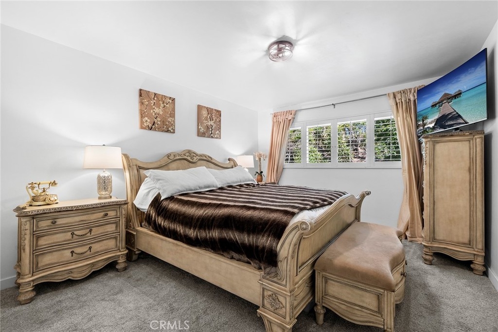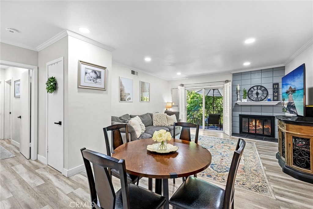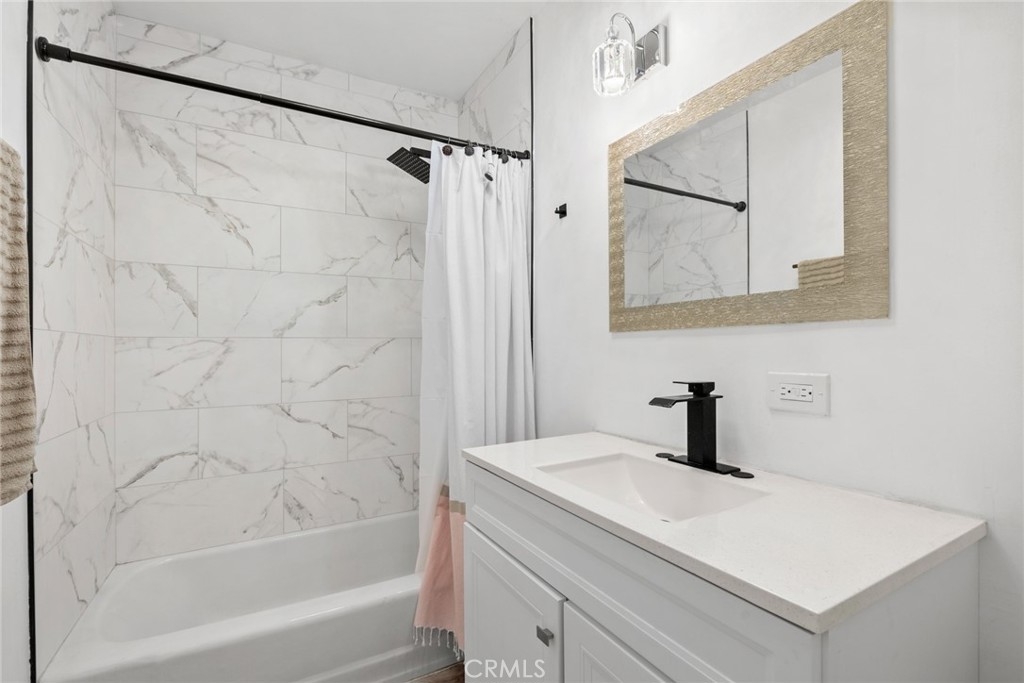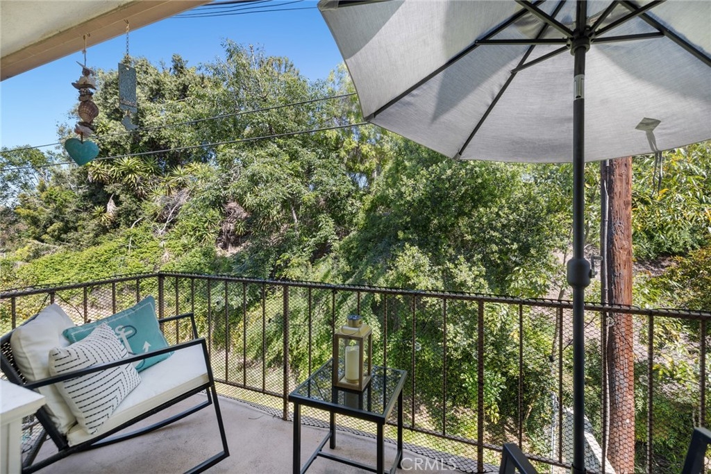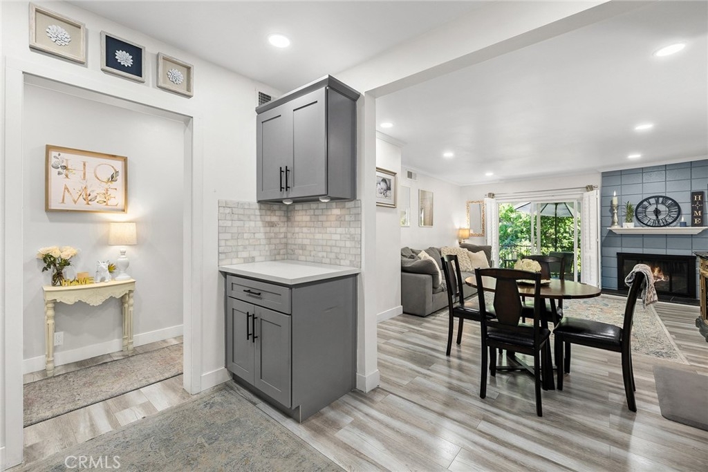 Nestled on a tranquil cul-de-sac, overlooking Lion's Field and Hillcrest Park, this recently renovated upper-level end unit is a haven of charm and convenience. Boasting mid-century design elements from the 1960s, 1360 Shadow Lane # T exudes a welcoming sense of space that is perfect for elegant and effortless living. Step inside and be greeted by an inviting living area, complete with a wood-burning fireplace that sets the perfect ambiance for cozy evenings. The living area flows seamlessly into a peaceful balcony, enveloped by lush trees, offering the ideal spot for relaxation and unwinding. The fully remodeled gourmet kitchen is a chef's dream, featuring shaker cabinets, quartz countertops, custom marble backsplash, recessed lighting, and stainless steel appliances. Both bedrooms are luxuriously appointed with plush carpets and plantation shutters, while the bathrooms have been fully updated with designer fixtures, custom cabinets, and quartz countertops. The primary suite is a true retreat, with a private bathroom that includes a step-in shower, a separate vanity area, and two closet spaces. Other in-unit amenities include a full-sized laundry room with ample storage space, double pane windows, and a sliding glass door. Residents of this controlled entry community have access to a swimming pool, spa, and breathtaking views. HOA fees cover common areas, landscaping, water, trash, and insurance, making living here convenient and hassle-free. The Shadow Lane Community's location is unbeatable, with award-winning K-8 Beechwood Elementary, Cal State Fullerton, Fullerton Junior College, and Troy High School just a short distance away. A quick drive takes you to downtown Fullerton, where locally owned boutiques, restaurants, and a growing artisan Farmer's Market await.