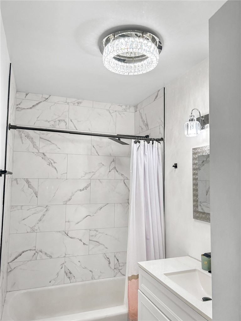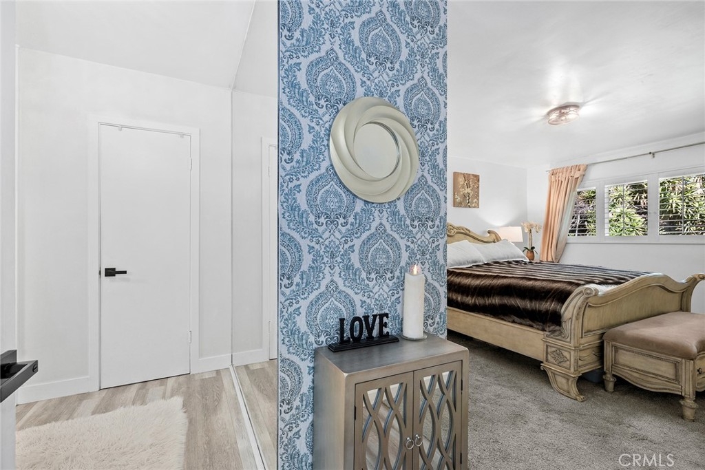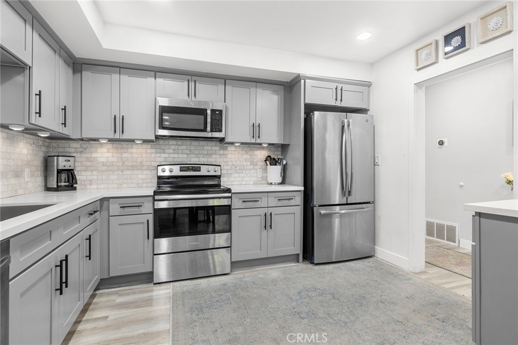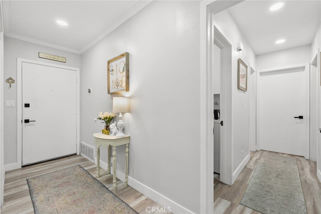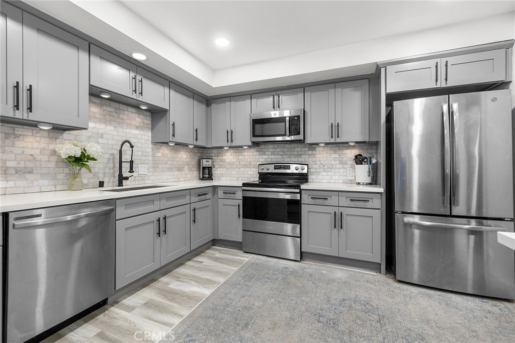 Nestled on a tranquil cul-de-sac, overlooking Lion's Field and Hillcrest Park, this recently renovated upper-level end unit is a haven of charm and convenience. Boasting mid-century design elements from the 1960s, 1360 Shadow Lane # T exudes a welcoming sense of space that is perfect for elegant and effortless living. Step inside and be greeted by an inviting living area, complete with a wood-burning fireplace that sets the perfect ambiance for cozy evenings. The living area flows seamlessly into a peaceful balcony, enveloped by lush trees, offering the ideal spot for relaxation and unwinding. The fully remodeled gourmet kitchen is a chef's dream, featuring shaker cabinets, quartz countertops, custom marble backsplash, recessed lighting, and stainless steel appliances. Both bedrooms are luxuriously appointed with plush carpets and plantation shutters, while the bathrooms have been fully updated with designer fixtures, custom cabinets, and quartz countertops. The primary suite is a true retreat, with a private bathroom that includes a step-in shower, a separate vanity area, and two closet spaces. Other in-unit amenities include a full-sized laundry room with ample storage space, double pane windows, and a sliding glass door. Residents of this controlled entry community have access to a swimming pool, spa, and breathtaking views. HOA fees cover common areas, landscaping, water, trash, and insurance, making living here convenient and hassle-free. The Shadow Lane Community's location is unbeatable, with award-winning K-8 Beechwood Elementary, Cal State Fullerton, Fullerton Junior College, and Troy High School just a short distance away. A quick drive takes you to downtown Fullerton, where locally owned boutiques, restaurants, and a growing artisan Farmer's Market await.