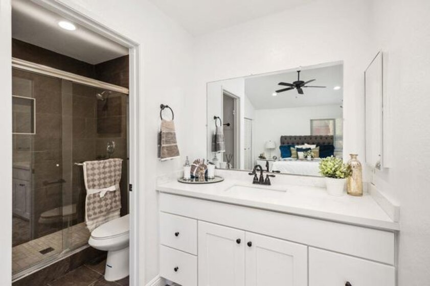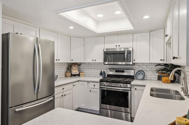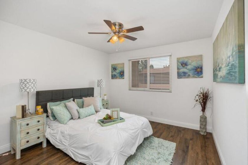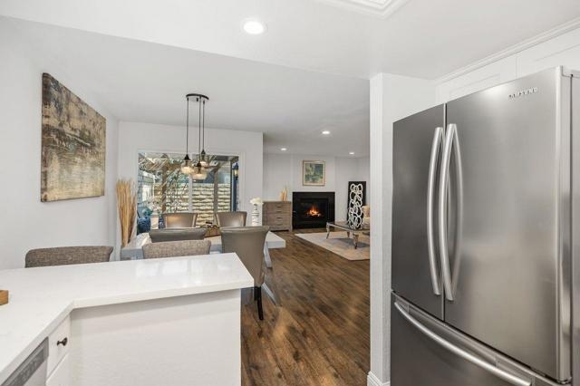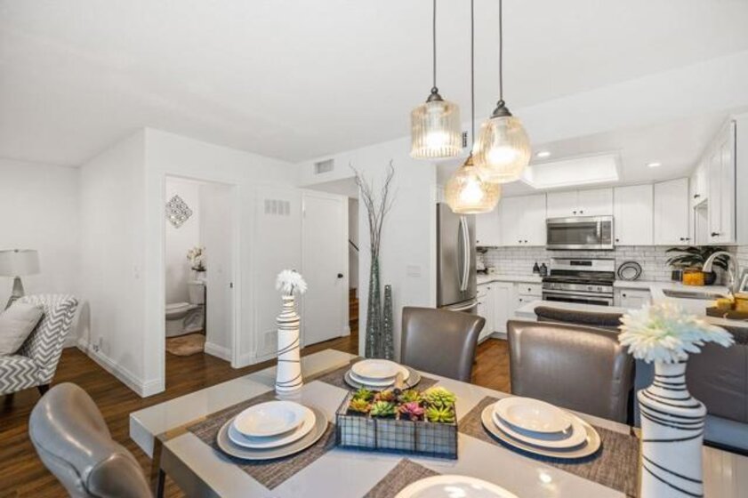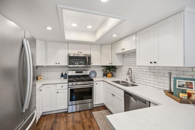 Beautifully remodeled townhome in the desirable Mark III Community with 3 bedrooms, 2.5 bathrooms, 2 car attached garage and serene private patio. The kitchen is updated with with white shaker cabinets, quartz counter tops, beautiful backsplash, stainless appliances and classy black faucets. The kitchen opens to a spacious living room with a black tile wall fireplace, recessed lighting, and laminate flooring throughout. Upstairs, the private primary bedroom features a fully upgraded bathroom. Two secondary bedrooms and a fully upgraded bathroom complete the second level. The Mark III Townhouse Community features pool & spa, tennis court, club house, and sport court. Located in the prime area of Fullerton. Close to Downtown Brea, Cal State Fullerton, Fullerton College and highly desired Troy High School. Don't miss this chance!