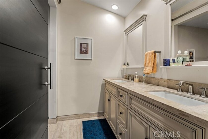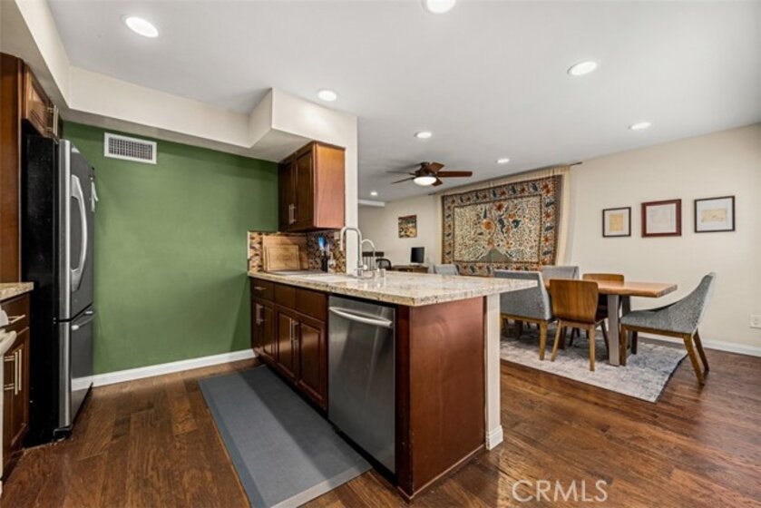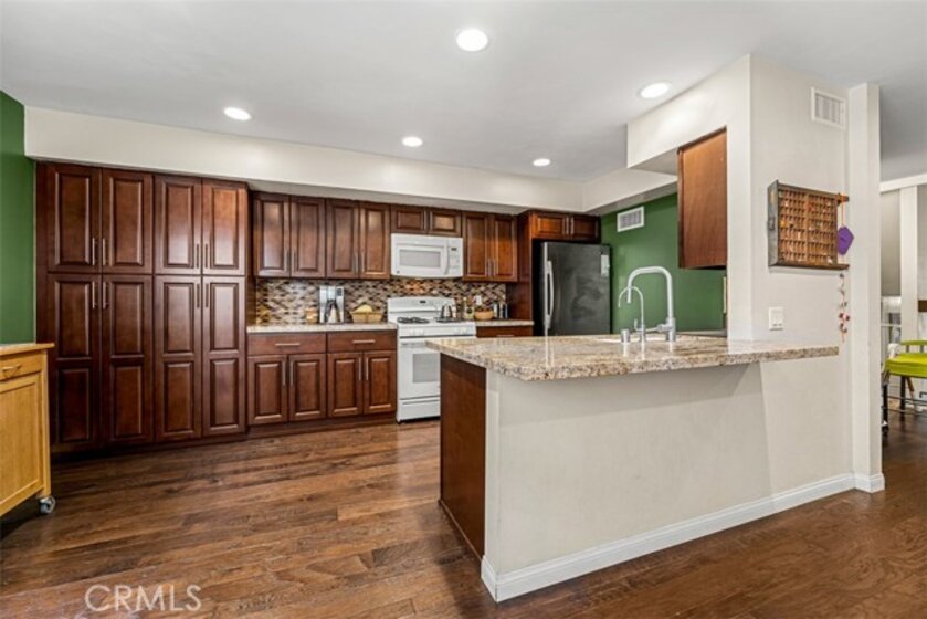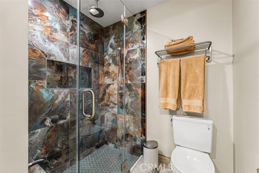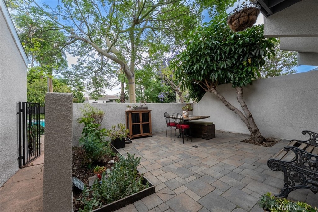 Welcome to the highly desirable Water Garden Community, where resort-style living meets everyday comfort. This pride-of-ownership tri-level home offers nearly 1,700 sq. ft. of well-designed living space with an open, functional layout. The bright interior is filled with natural light, featuring wide sliding doors and plantation shutters that connect multiple outdoor spaces and bring in both morning and afternoon sun—ideal for entertaining and everyday living. The main level showcases engineered hardwood flooring, custom baseboards, updated lighting, and a cast iron staircase railing. The kitchen and dining area include granite countertops, recessed lighting, a ceiling fan, and a newer stainless steel dishwasher. Upstairs, the primary suite features vaulted ceilings, a walk-in closet, private balcony, plantation shutters, and a modern ceiling fan. The fully remodeled bathroom offers a spa-like feel with a raised ceiling, custom tile and glass shower with dual showerheads, modern fixtures, Toto toilet, new flooring, and a custom barn door entry. Additional highlights include a private patio with pavers and garden area, newer HVAC with upgraded ductwork, updated water heater, and whole-home water softener with reverse osmosis. Located near the community pool, spa, and greenbelt, and just minutes from shopping, dining, CSUF, and downtown Fullerton—this is a great opportunity to own a well-maintained, upgraded home