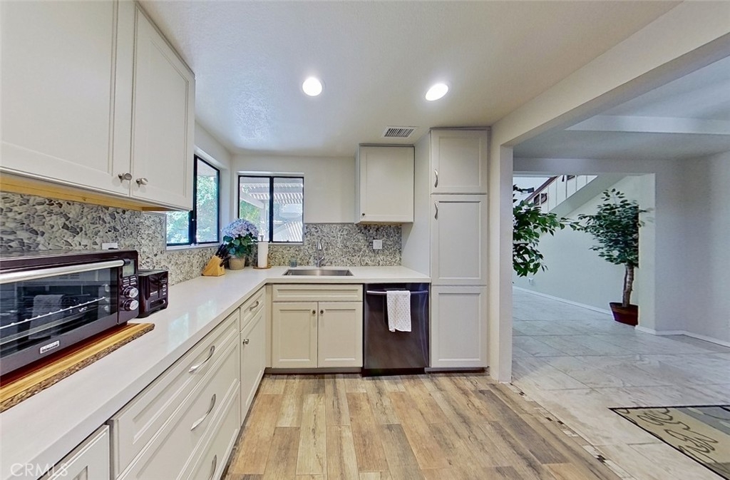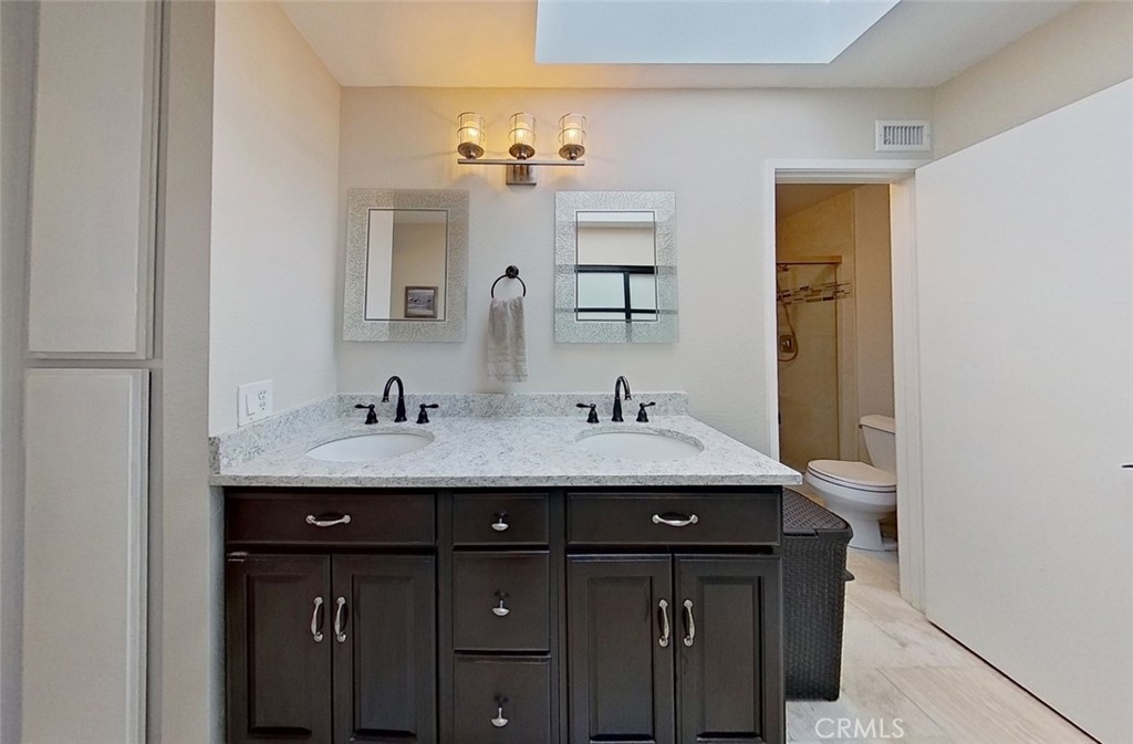 Welcome to this incredible upgraded condo boasting 2 bedrooms and 2.5 bathrooms, encompassing nearly 1,150 square feet of living space. Upgrades include: porcelain tile downstairs, new water heater installed in 2022, new ac unit installed in 2021, laminate floors upstairs, quartz countertops, newer cabinets, Samsung appliances installed in 2019, a skylight, marble and travertine floors in upstairs bathroom, and a downstairs closet. Situated in one of Fullerton's most coveted areas, this home offers unparalleled convenience, being in close proximity to premier shopping destinations, universities/colleges, highly rated schools and providing close access to freeways. Nestled within the Hidden Lakes community, this residence provides a serene ambiance surrounded by beautifully landscaped trees towering over the community providing ample shade, 2 tennis courts, and swimming pool/jacuzzi. Entering inside, you'll be greeted by high ceilings, upgraded flooring throughout, newer HVAC, and a beautiful remodeled kitchen. The main level balcony offers a picturesque view of a tranquil creek and stunning natural landscape. The second floor layout features 2 master suites with upgraded bathrooms. This Hidden Lakes condo is ideally located near esteemed institutions like Cal State Fullerton, Fullerton College, Downtown Brea, Coyote Hills Golf Course, Providence St. Jude Medical Center, hiking/bike trails, and Brea Mall.