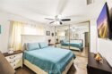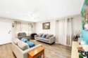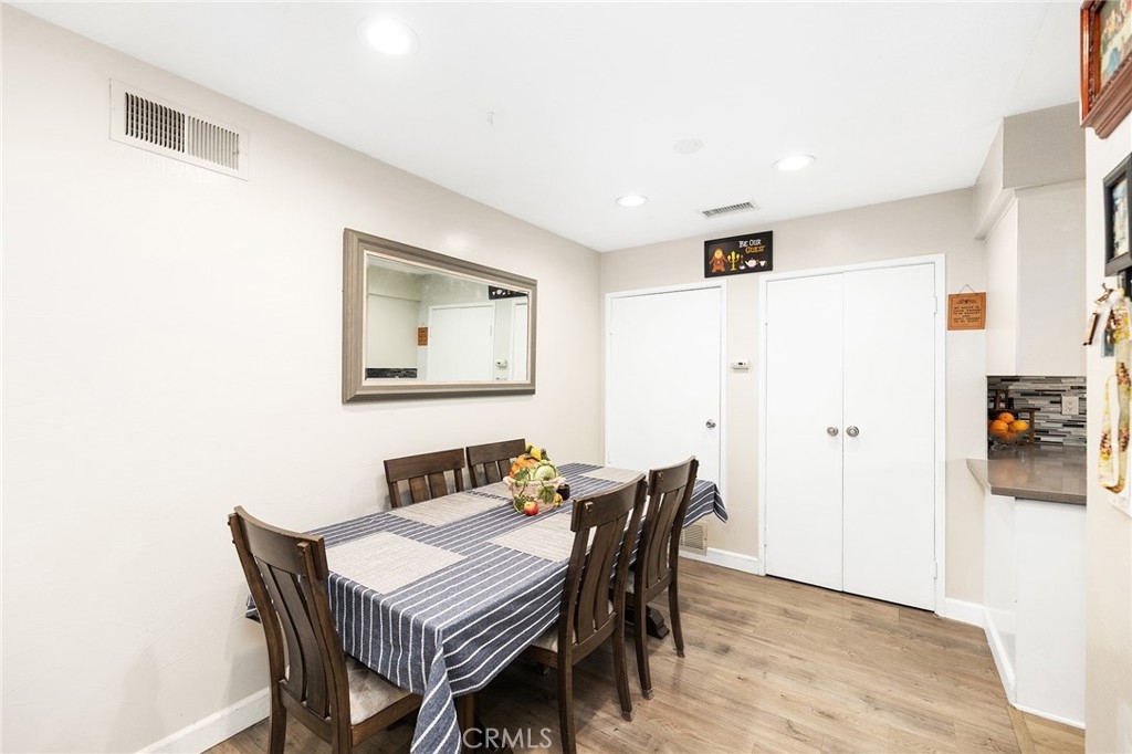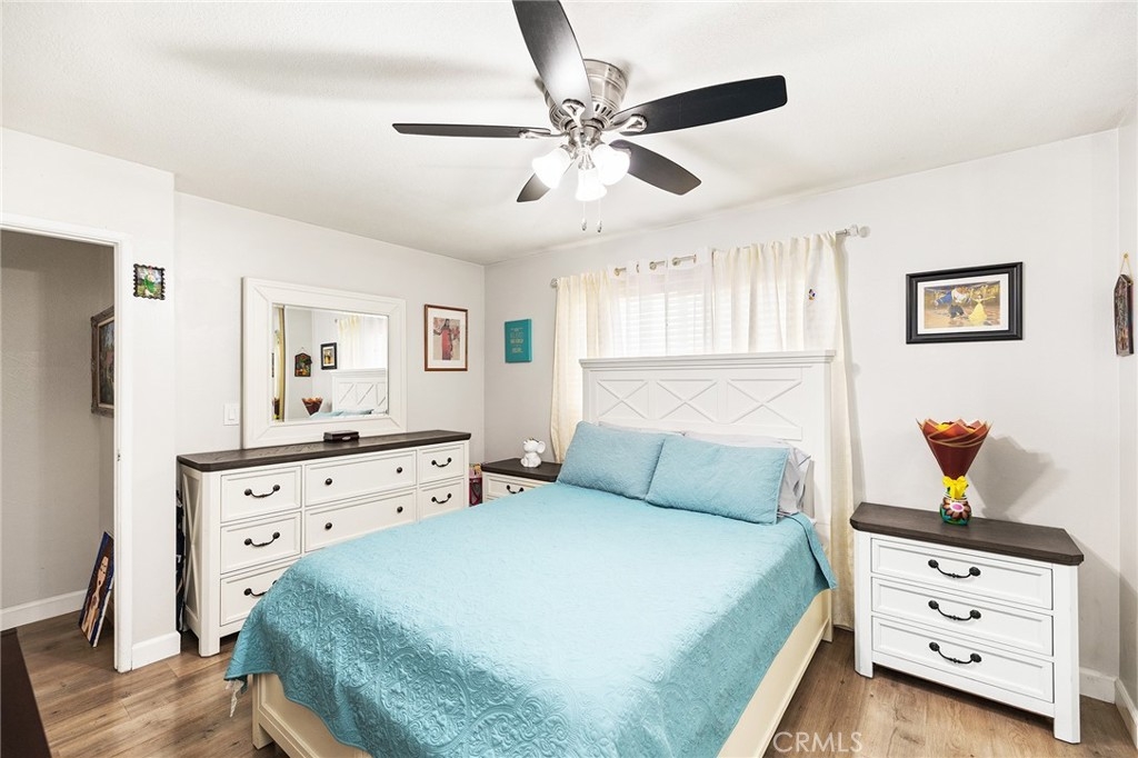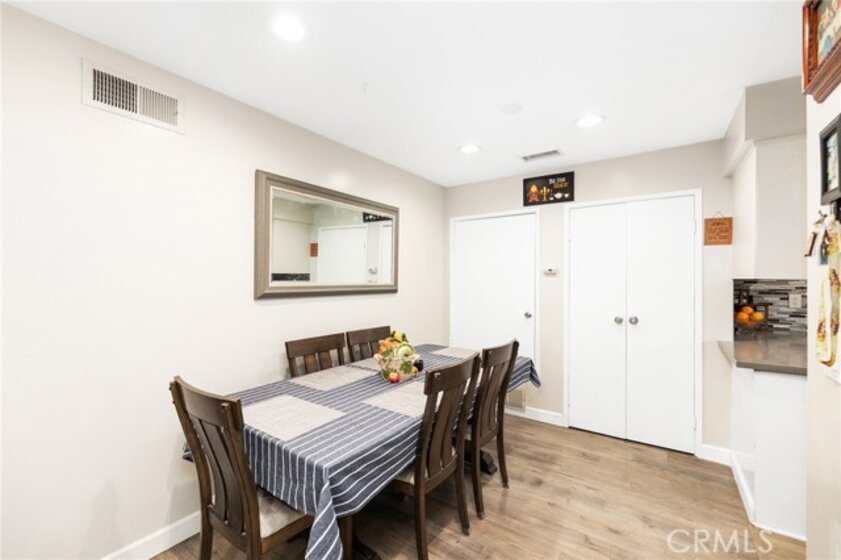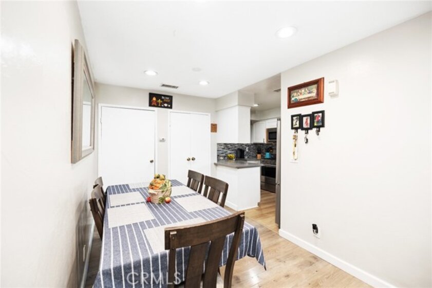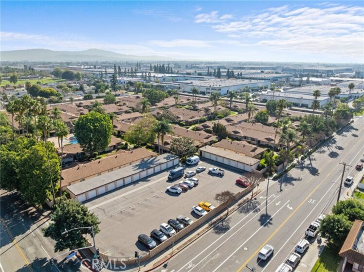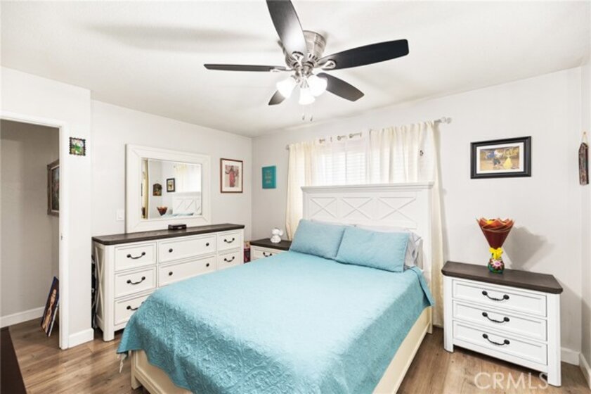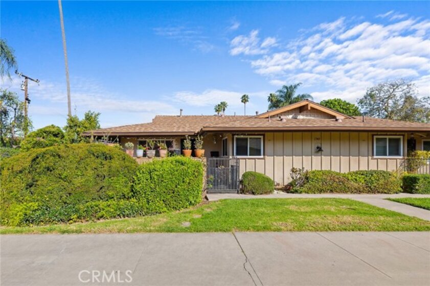 Fabulous Condo in the beautiful Coco Palms Community, featuring two spacious bedrooms and two bathrooms, along with the added convenience of a private one-car detached garage. This desirable single-story, end-unit offers privacy and comfort in a well-maintained residential setting. The inviting kitchen showcases quartz countertops, a stylish backsplash, white cabinetry, and stainless steel appliances—perfectly blending function and modern design. The separate living room and dining area create an ideal layout for both everyday living and entertaining. Laminate flooring flows seamlessly throughout the home. Both bathrooms come with tile flooring and have been tastefully updated. Both bedrooms offer large closets with mirror doors and ceiling fans. Large living room with lots of natural light and a ceiling fan. This home also offers central air conditioning and heating, providing year-round comfort. Enjoy a charming front porch/patio, ideal for relaxing or hosting guests. The community offers a sparkling pool, a secondary Kids pool, barbecue and picnic areas, and beautifully landscaped walkways with lush greenery throughout. HOA dues include water, sewer, and trash for added value and convenience. Excellent location close to freeways, shopping, restaurants, schools, and entertainment. This is a wonderful opportunity to own a turnkey home in a desirable community.