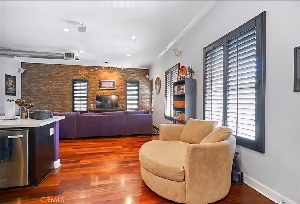 This is NOT your typical condo!!! It's a beautifully upgraded end-unit luxury loft located in the highly desirable Soco Walk Community in Downtown Fullerton. This rare residence features private elevator access from both the garage and front entry, offering exceptional convenience and privacy. The home offers an open-concept layout with soaring ceilings, abundant natural light, and an industrial-modern design. Featuring 2 spacious bedrooms and 2 full bathrooms, this residence also includes a centrally located hallway laundry area for added functionality. Extensive upgrades throughout include custom high end kitchen cabinetry, quartz countertops, crown molding, custom plantation shutters, exposed brick accent walls, surround sound system, and custom hardwood flooring in all living areas. Large windows enhance the bright and airy atmosphere, making the space ideal for both everyday living and entertaining. The owner also installed a BRAND NEW WATER HEATER & GARBAGE DISPOSAL for the NEW HOME OWNER. Located just steps from the Fullerton MetroLink station and within close proximity to Downtown Fullerton’s restaurants, shopping, and entertainment, this home is perfect for those seeking a vibrant and convenient urban lifestyle. Turn-key and move-in ready. All appliances included, including refrigerator, washer, and dryer.