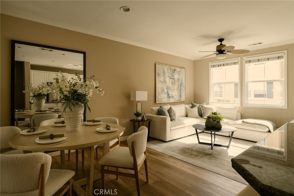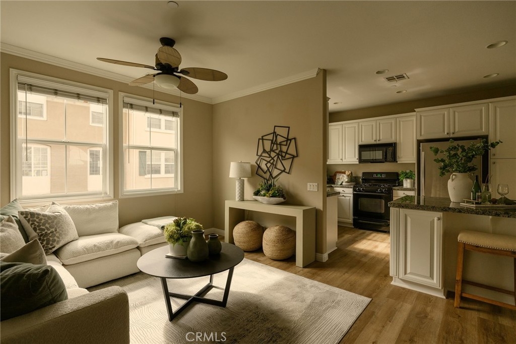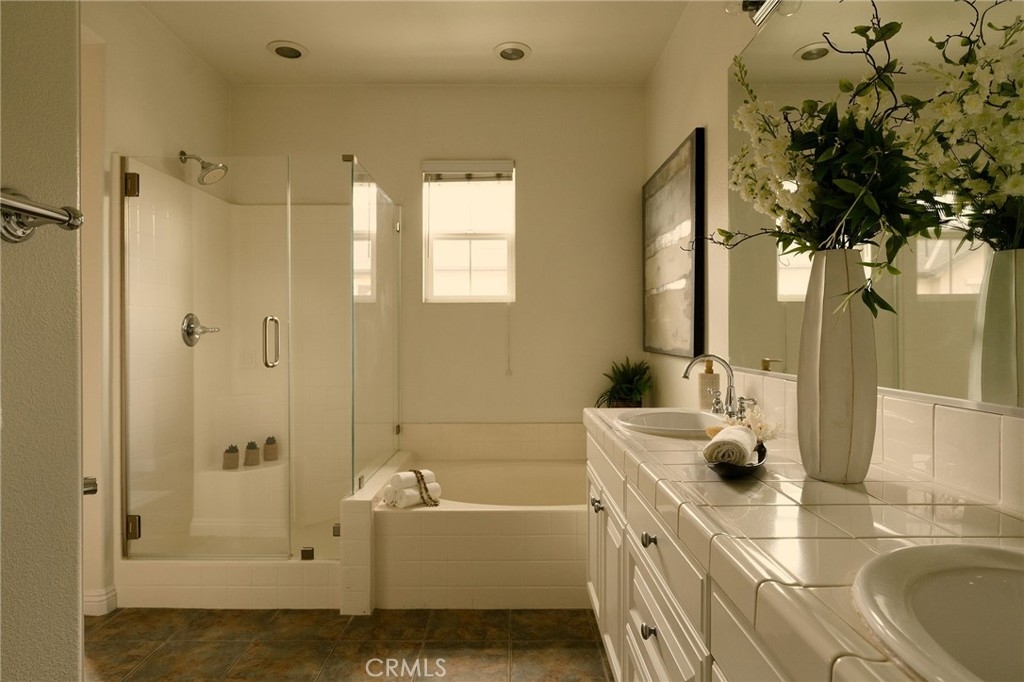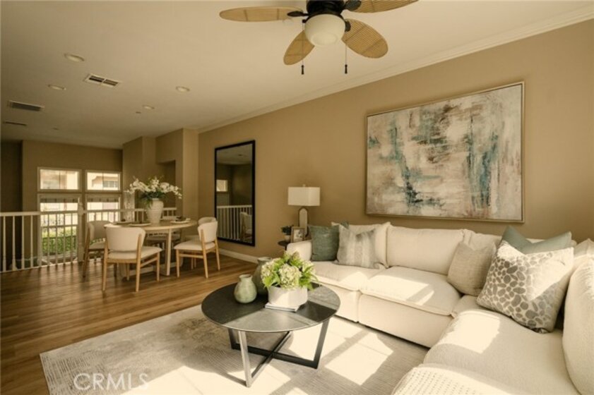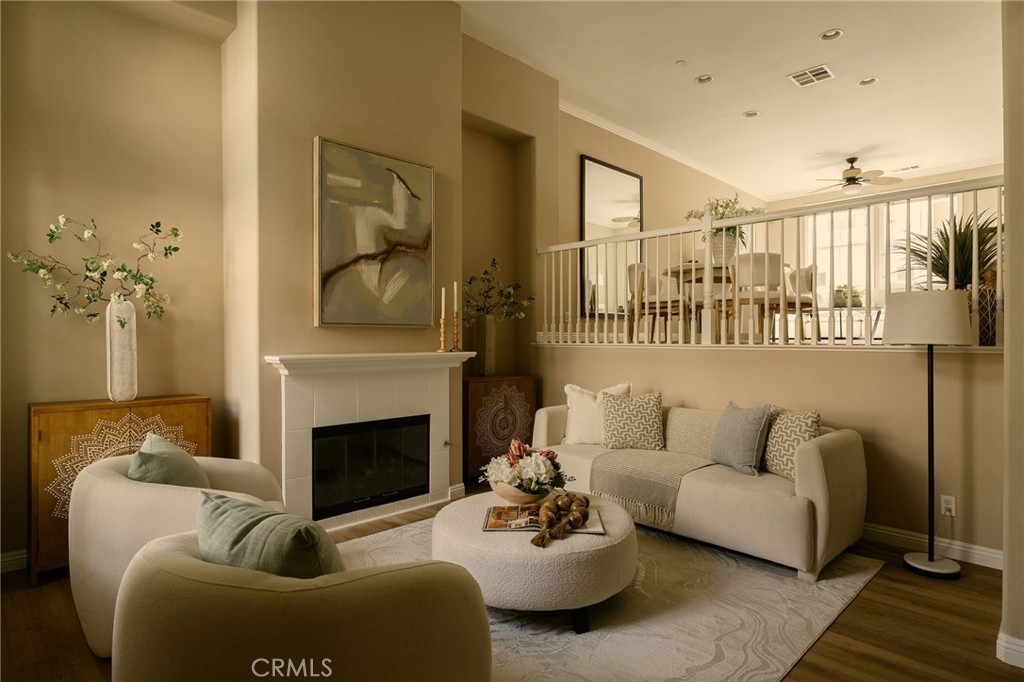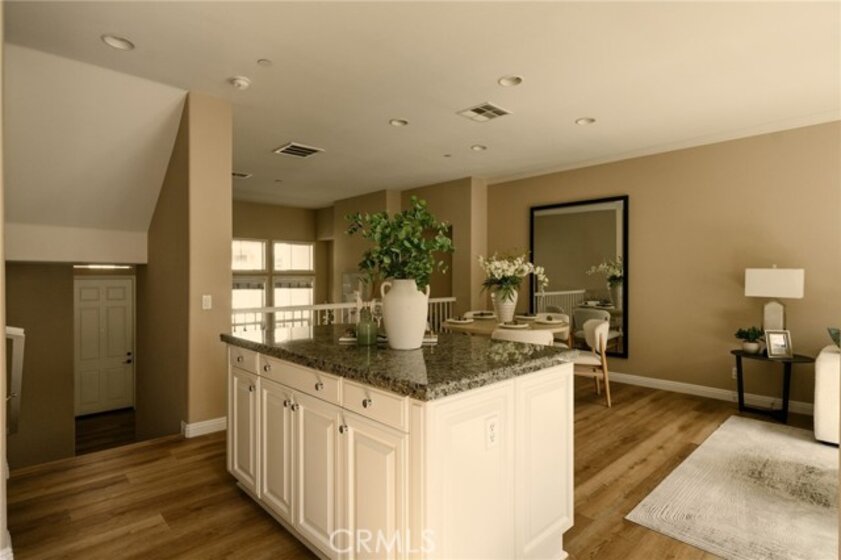 Located in one of Fullerton’s most desirable neighborhoods, this beautifully maintained tri-level home sits in the sought-after Amerige Heights “Radcliffe” community by renowned builder MBK Homes. Tucked into a quiet interior location, the welcoming front porch sets the tone for relaxed, upscale living. The home features 3 bedrooms, 2.5 bathrooms, and a private layout with no one above or below. The living room offers a cozy tile fireplace, while brand new wood like luxury vinyl and tile flooring run throughout. The open-concept kitchen includes granite counter tops, white cabinetry, black appliances, stainless steel dishwasher, center island, and adjacent dining area, ideal for everyday living and entertaining. The spacious primary suite offers dual sinks, separate tub and shower, and a large walk-in closet. Additional highlights include recessed lighting, crown molding, ceiling fans, upstairs laundry, powder room, and direct access to an oversized 2-car garage with storage and workspace. Guest parking is conveniently nearby. Enjoy resort-style HOA amenities including pool, spa, tennis courts, clubhouse, high-speed internet, and beautifully maintained grounds. Walking distance to top-rated schools such as Robert Fisler Elementary/Junior High, Sunny Hills High School, Arborland Montessori, and Amerige Heights Shopping Center. Close to parks, golf, dining, and shopping.