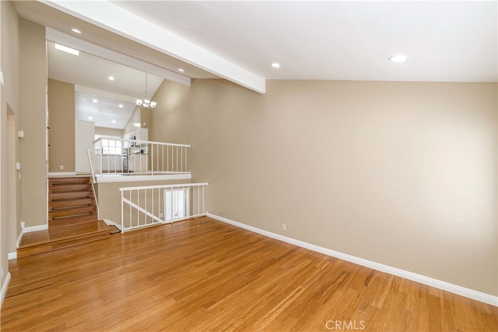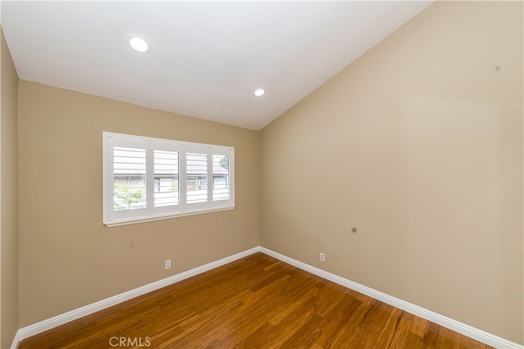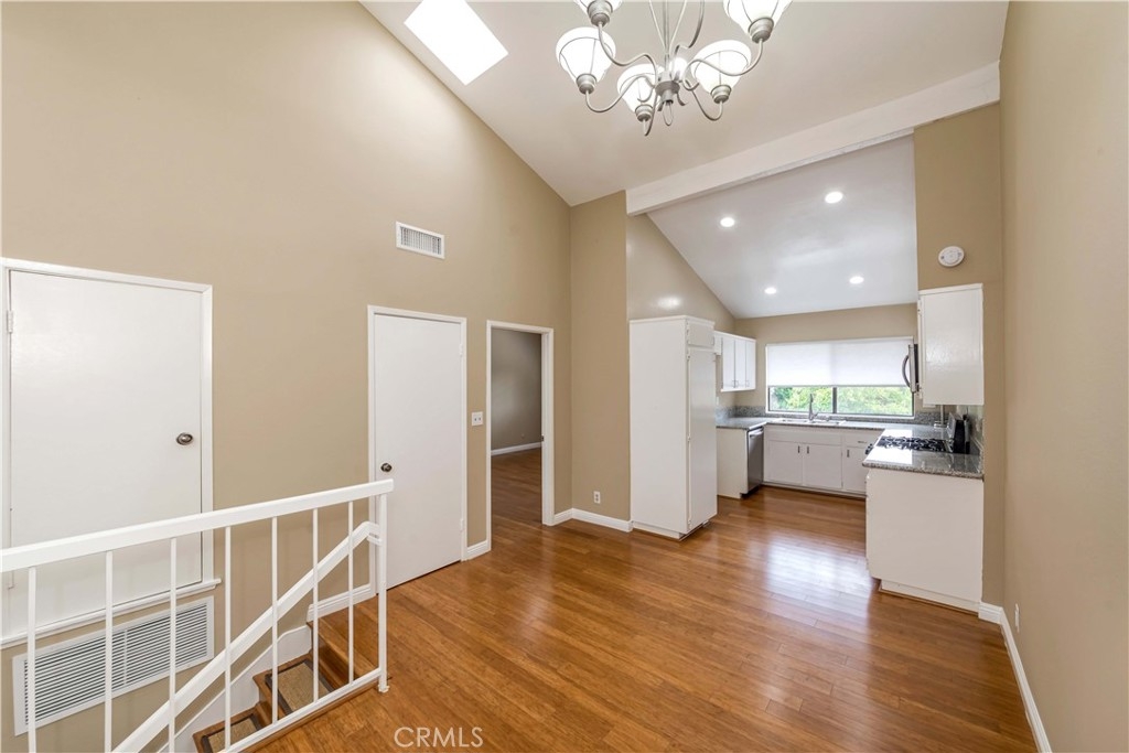 Upgraded townhouse in a quiet interior location. Split-level floorplan(almost single story) with no one above or below. 2 generous sized bedrooms & 2 bathrooms with open and bright floorplan, cathedral ceilings, bamboo flooring throughout, scraped ceilings, recessed lights, skylight, plantation shutters. Spacious kitchen with granite countertops, stainless steel appliances & eating area. The master bedroom has vaulted ceilings & large mirrored closet doors. Both bathrooms have been totally updated with no detail overlooked. Central A/C and upgraded furnace. Direct access to the 2 cars garage & laundry(gas and electric). Award winning schools (Sunset Lane Elementary, Parks Junior & Sunny Hills High School). Low association dues ($245.00) include water/trash/fire insurance/all outside maintenance. outstanding neighborhood, within walking distance to the schools, parks, and prestigious Amerige Heights Town Center