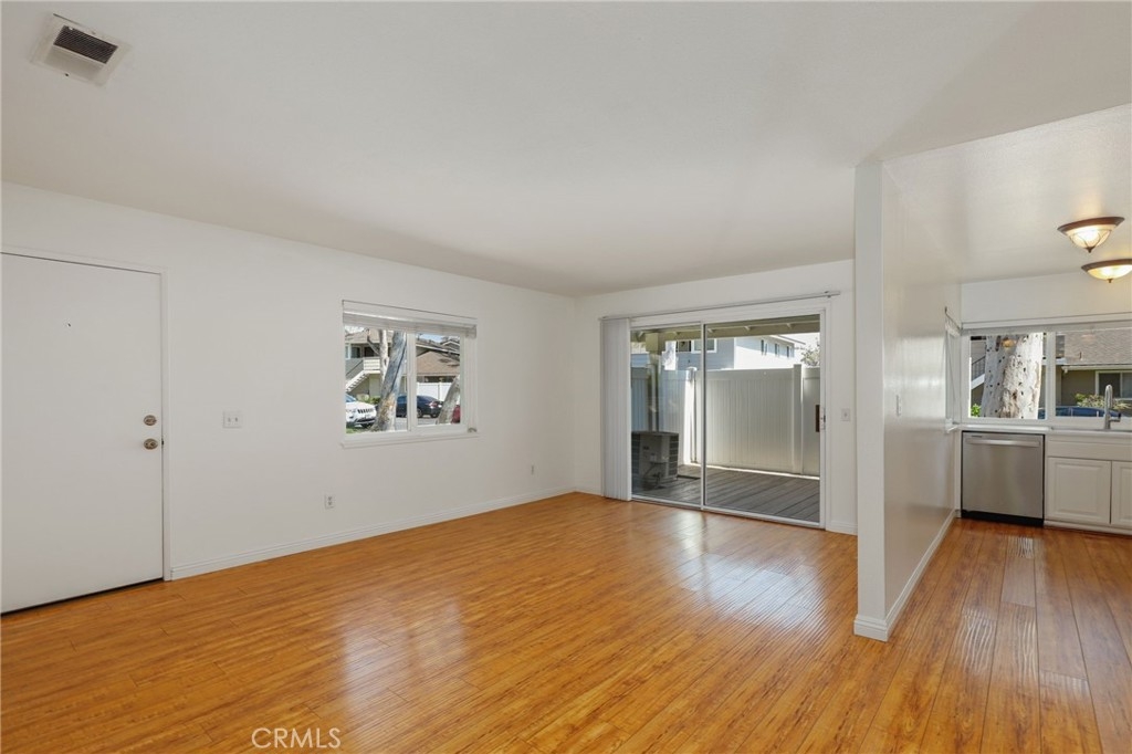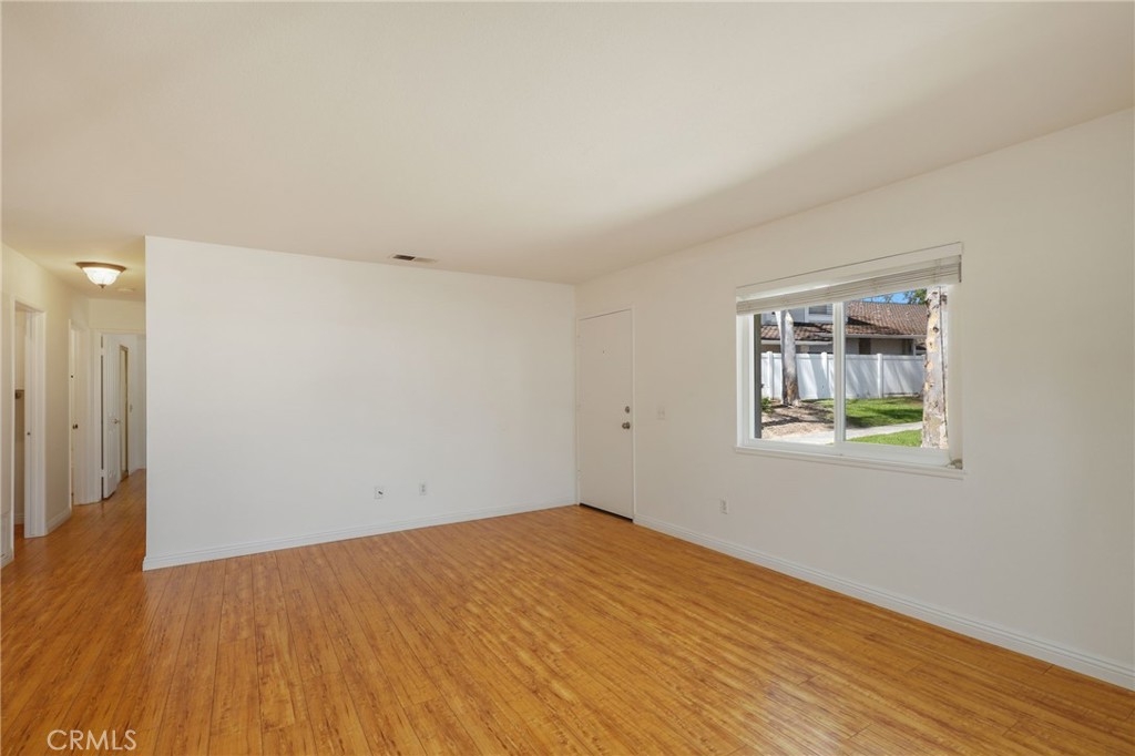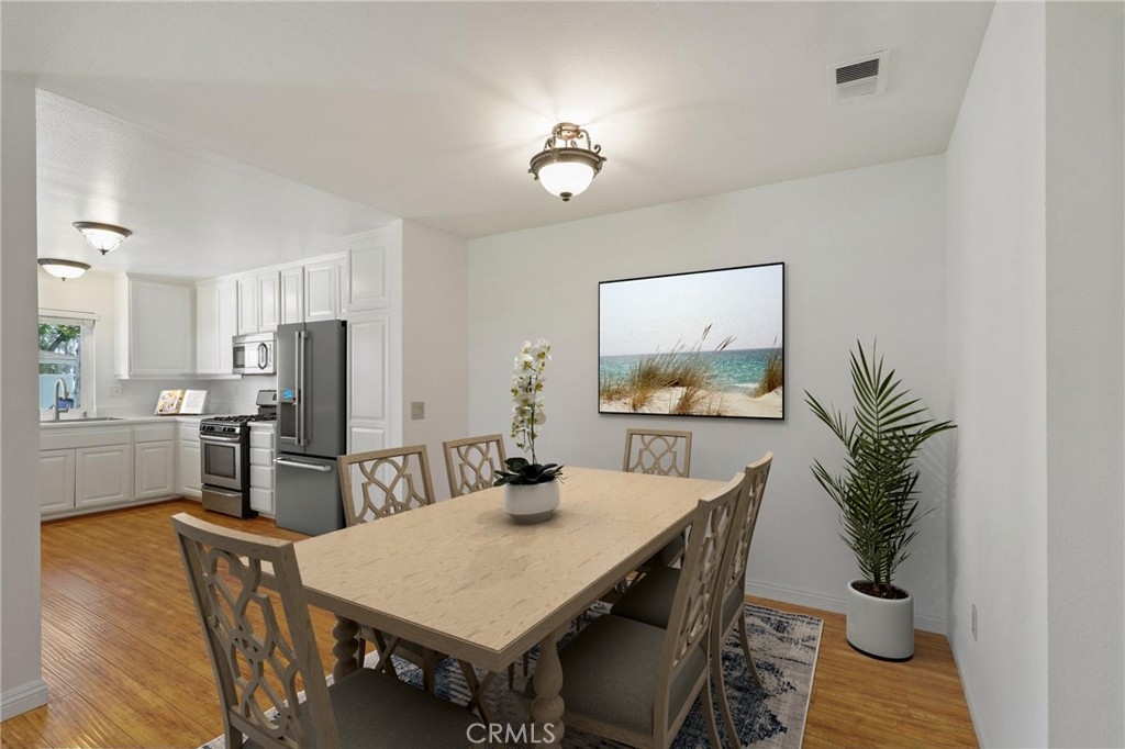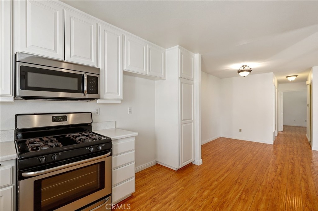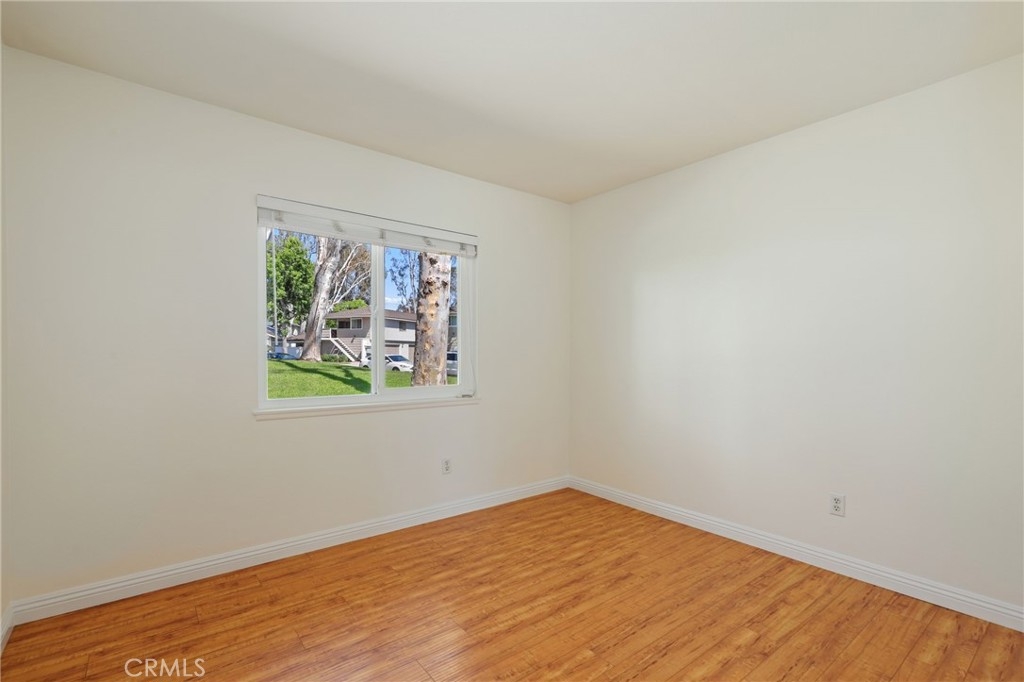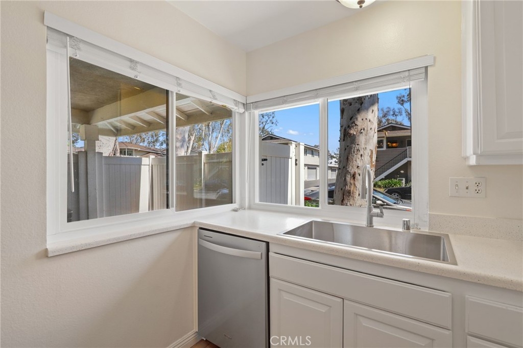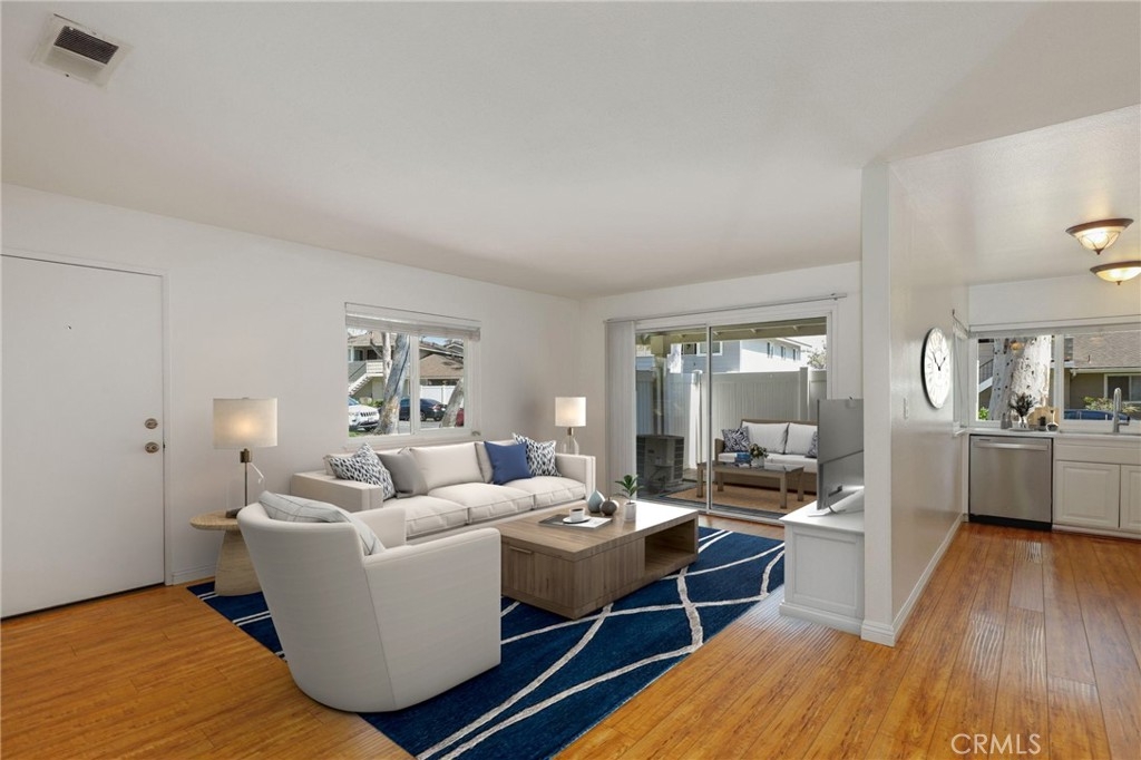 North Orange County single level condo in Fullerton features white bright paint tones and uniform flooring throughout creates this cozy 2-bedroom and 1-bathroom home. The open concept living room with an adjacent dining area and windows that allows an abundance of natural light to flow through this floor plan as you look out onto the park-like front yard setting. The remodeled kitchen with white cabinetry, pantry, farm style sink, features ENERGY STAR Appliances include gas single oven range, microwave and dishwasher. The two bedrooms have a walk-in closet with mirrored wardrobe closet door with organizers. Down the hallway is a shared full bathroom with Quartz countertops, single sink vanity and shower in tub combo. Inside laundry with storage and washer dryer hookups. An oversized two car garage, A/C and heating, corner unit, patio with white Vinyl fencing. Enjoy the Community amenities sparkling pool and spa area, open basketball courts, greenbelt walking paths, hiking trails at the end of the cove and more. Plenty of guest parking. Award winning Schools and District, Fullerton JC and California State University, Fullerton. Nearby shopping, restaurants, movie theaters, coffee shops and easy access to Coyote Hills trails. Must see the perfect home for you!