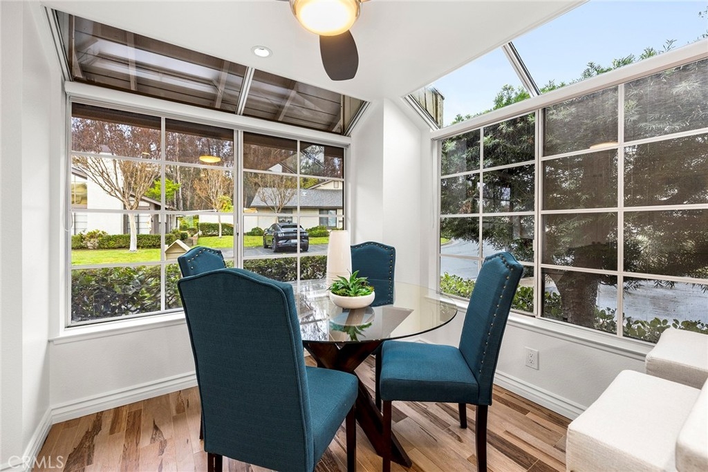 Beautiful Sunset VIEW & Disney fireworks ! A charming end-unit home, featuring an ideal floor plan for Single-Story living since all common area and the primary suite is positioned on the MAIN-LEVEL. Step inside to appreciate the light & bright ambiance from vaulted ceilings and numerous windows creating an excellent natural light to illuminate the space. Remodeled kitchen with top of the line Sub-Zero and Bosch appliances along with plentiful custom cabinets, convenient breakfast nook for easy day-to-day living, spacious living room with intimate fireplace opening out to an expansive balcony to enjoy the endless stretches of the sky. Additional bedroom and a secondary living room (could be used as a 3rd bedroom) downstairs with direct access to the private backyard suits various lifestyles. Many upgraded features include remodeled kitchen and a bathroom, additional wall AC unit for extra comfort along with sound proofing in secondary living room, PAID-OFF SOLAR, EV charger in garage, water softener, ample storage in attic and fresh coat of paint. Prime location just moments to multiple parks and trails, zoned for award-winning Fullerton school district.