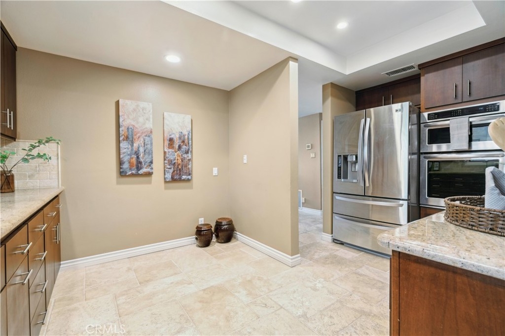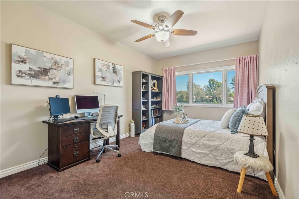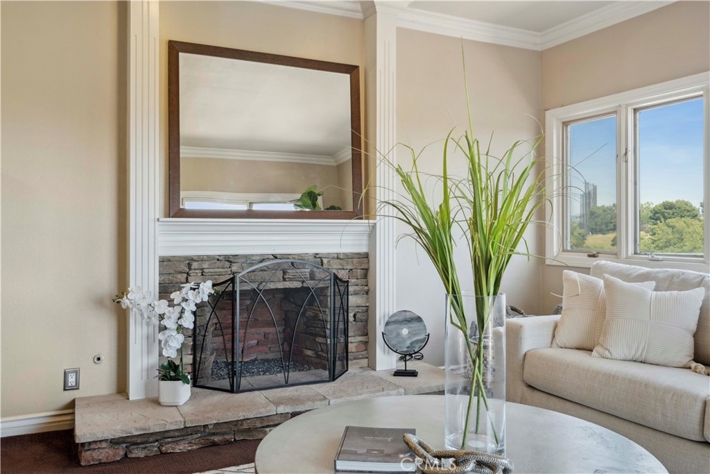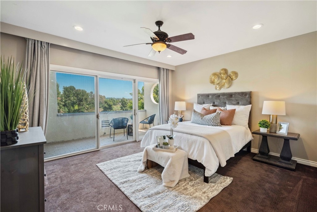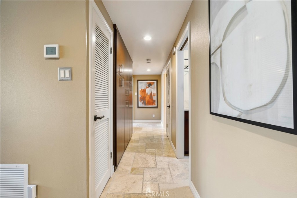 Welcome to 2602 Harbor Blvd, a beautifully appointed single-level home nestled in the exclusive, gated community of Greenview Terrace in Fullerton. One of only 18 homes in this serene enclave, this ground-level residence offers step-free access and breathtaking views of the Fullerton Golf Course. Spanning a spacious open floor plan, this elegant condo features two generous bedrooms and two full bathrooms, including a luxurious primary suite with a private balcony, custom cherry wood and cedar walk-in closet, and a spa-inspired bath. The master bathroom is a true retreat, boasting travertine floors, a Jacuzzi tub with 6 jets, spa-style rain shower with 5 jets, and custom cabinetry with European-style fixtures. Designed with sophistication and comfort in mind, the home showcases custom cherry wood and cedar cabinetry, travertine flooring, granite and marble countertops, and LED recessed lighting throughout. The gourmet kitchen is ideal for the home chef, and the living room features a custom flagstone gas fireplace and crown molding. Enjoy seamless indoor-outdoor living with two private balconies overlooking the golf course and rolling hillside. Additional highlights include a dedicated laundry room, central air and heating, and direct access to resort-style amenities just steps away—including a swimming pool, sauna, tennis court, recreation room with a pool table, and more. Conveniently located near shopping centers and freeway access, this home offers both tranquility and accessibility.