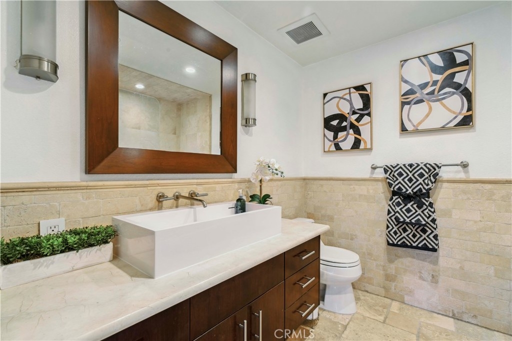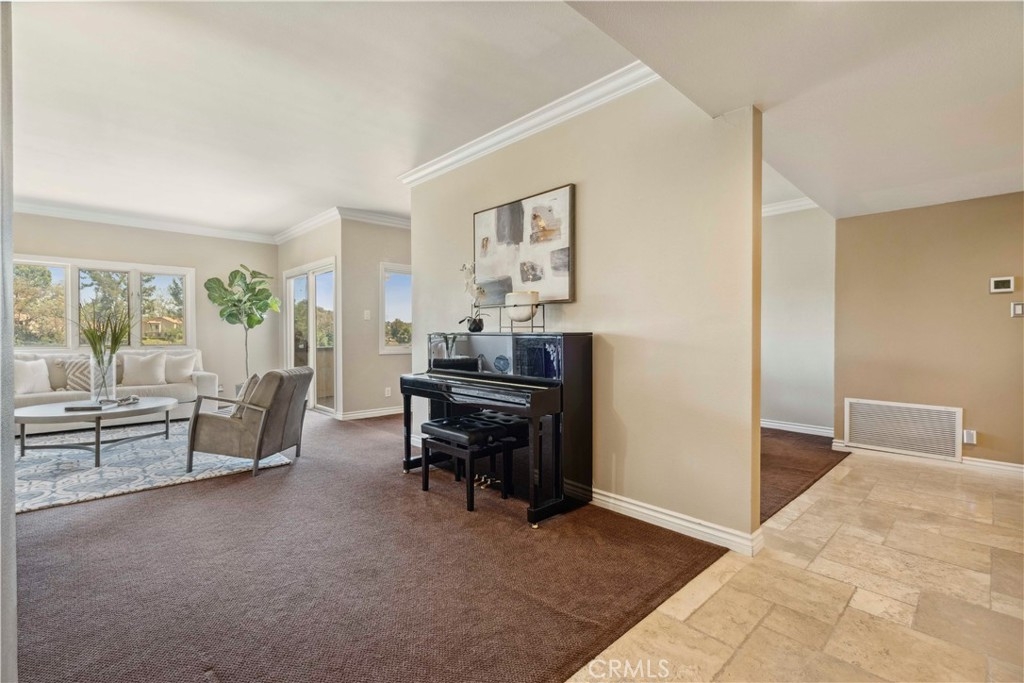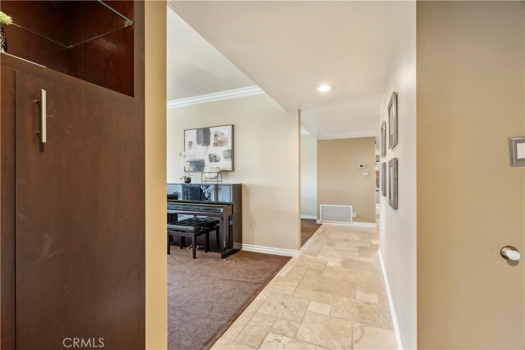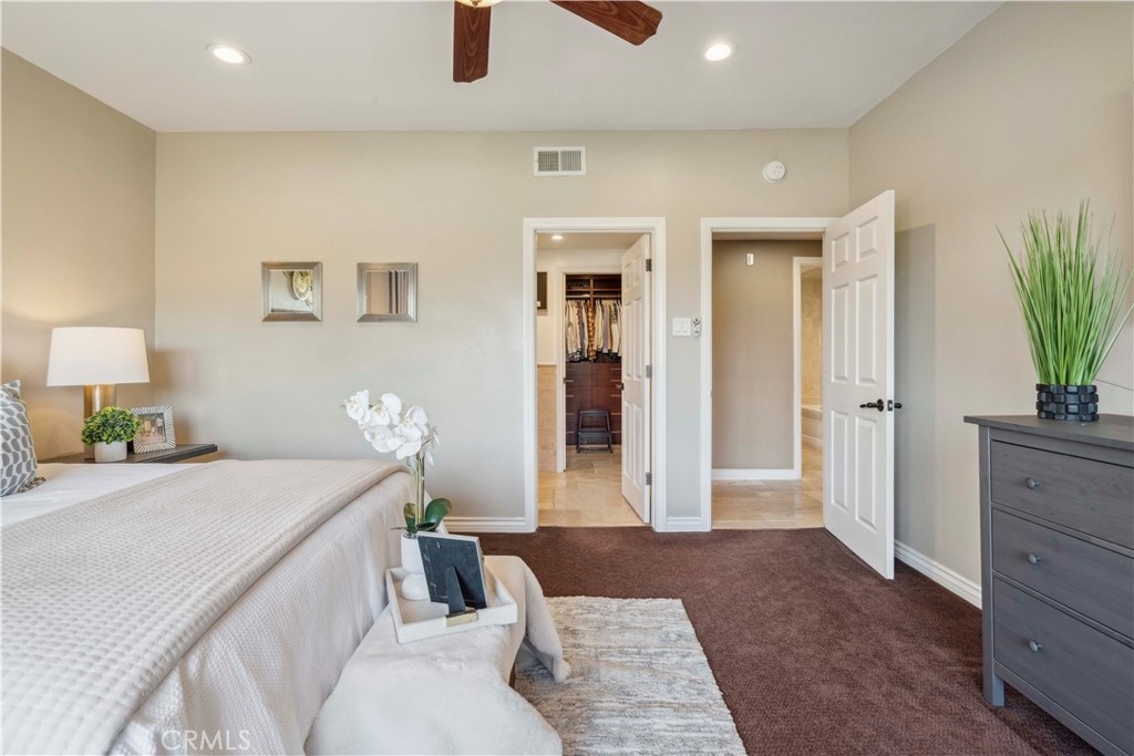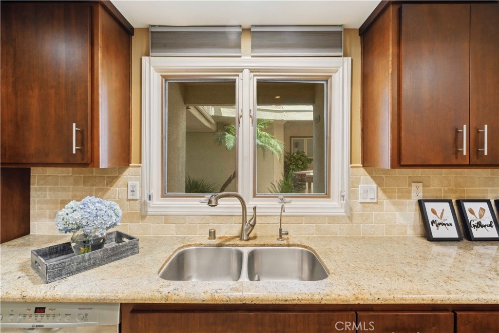 Welcome to 2602 Harbor Blvd, a beautifully appointed single-level home nestled in the exclusive, gated community of Greenview Terrace in Fullerton. One of only 18 homes in this serene enclave, this ground-level residence offers step-free access and breathtaking views of the Fullerton Golf Course. Spanning a spacious open floor plan, this elegant condo features two generous bedrooms and two full bathrooms, including a luxurious primary suite with a private balcony, custom cherry wood and cedar walk-in closet, and a spa-inspired bath. The master bathroom is a true retreat, boasting travertine floors, a Jacuzzi tub with 6 jets, spa-style rain shower with 5 jets, and custom cabinetry with European-style fixtures. Designed with sophistication and comfort in mind, the home showcases custom cherry wood and cedar cabinetry, travertine flooring, granite and marble countertops, and LED recessed lighting throughout. The gourmet kitchen is ideal for the home chef, and the living room features a custom flagstone gas fireplace and crown molding. Enjoy seamless indoor-outdoor living with two private balconies overlooking the golf course and rolling hillside. Additional highlights include a dedicated laundry room, central air and heating, and direct access to resort-style amenities just steps away—including a swimming pool, sauna, tennis court, recreation room with a pool table, and more. Conveniently located near shopping centers and freeway access, this home offers both tranquility and accessibility.